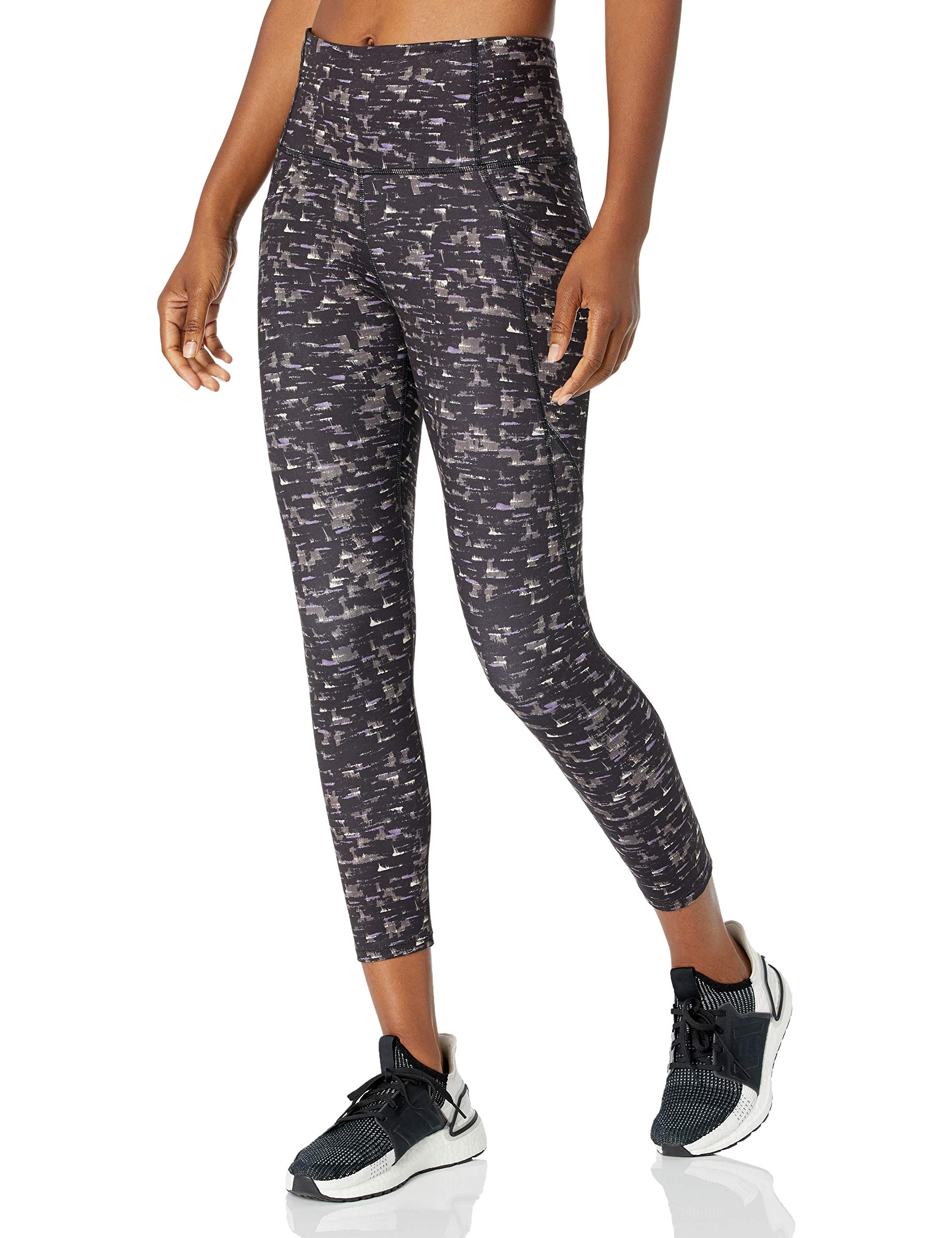 Core 10 Women's All Day Comfort High-Waist Side-Pocket 7/8 Crop Yoga Legging, Brushstroke, X-Small