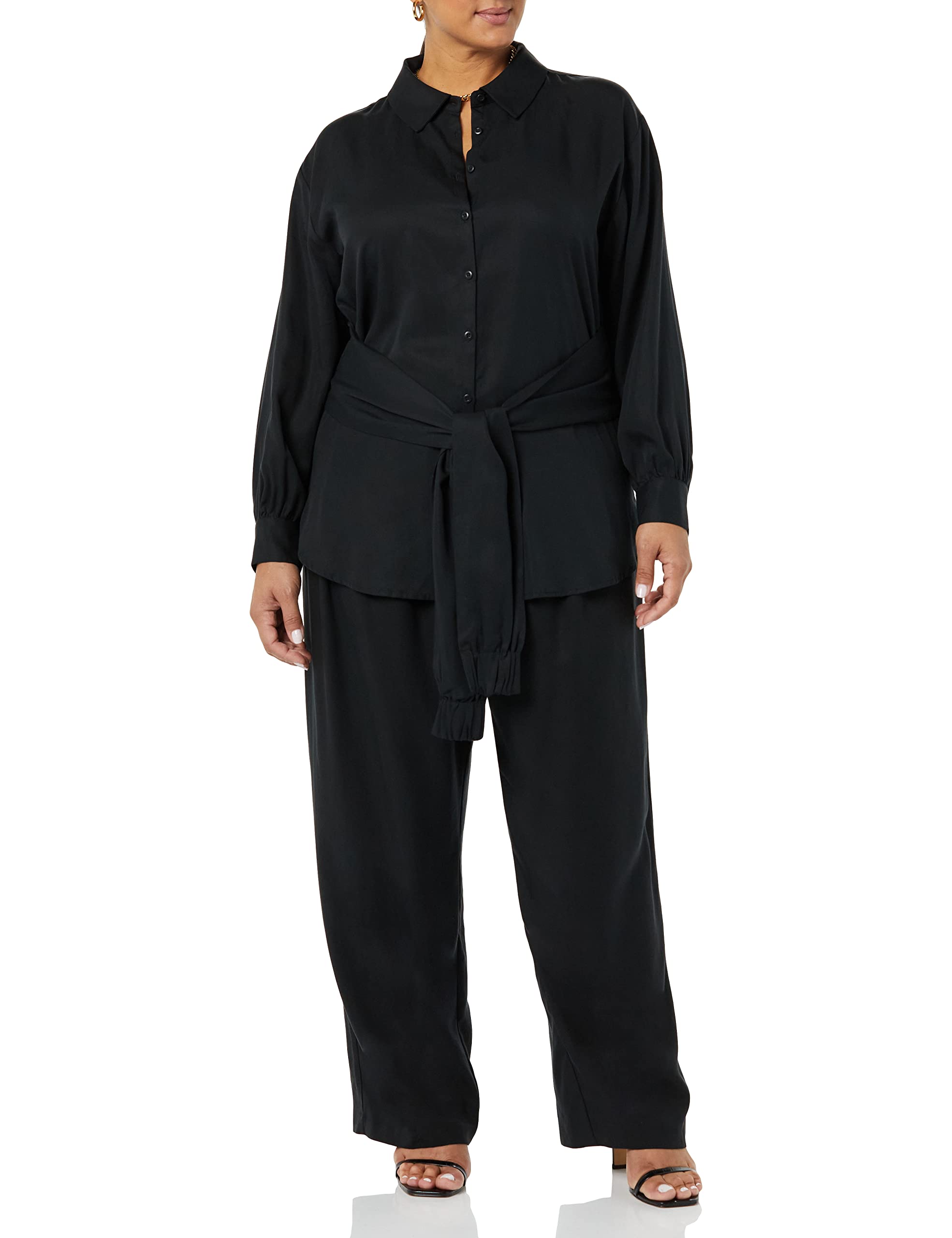 TEREA Women's Selah Tie Front Blouse, Black, XXS