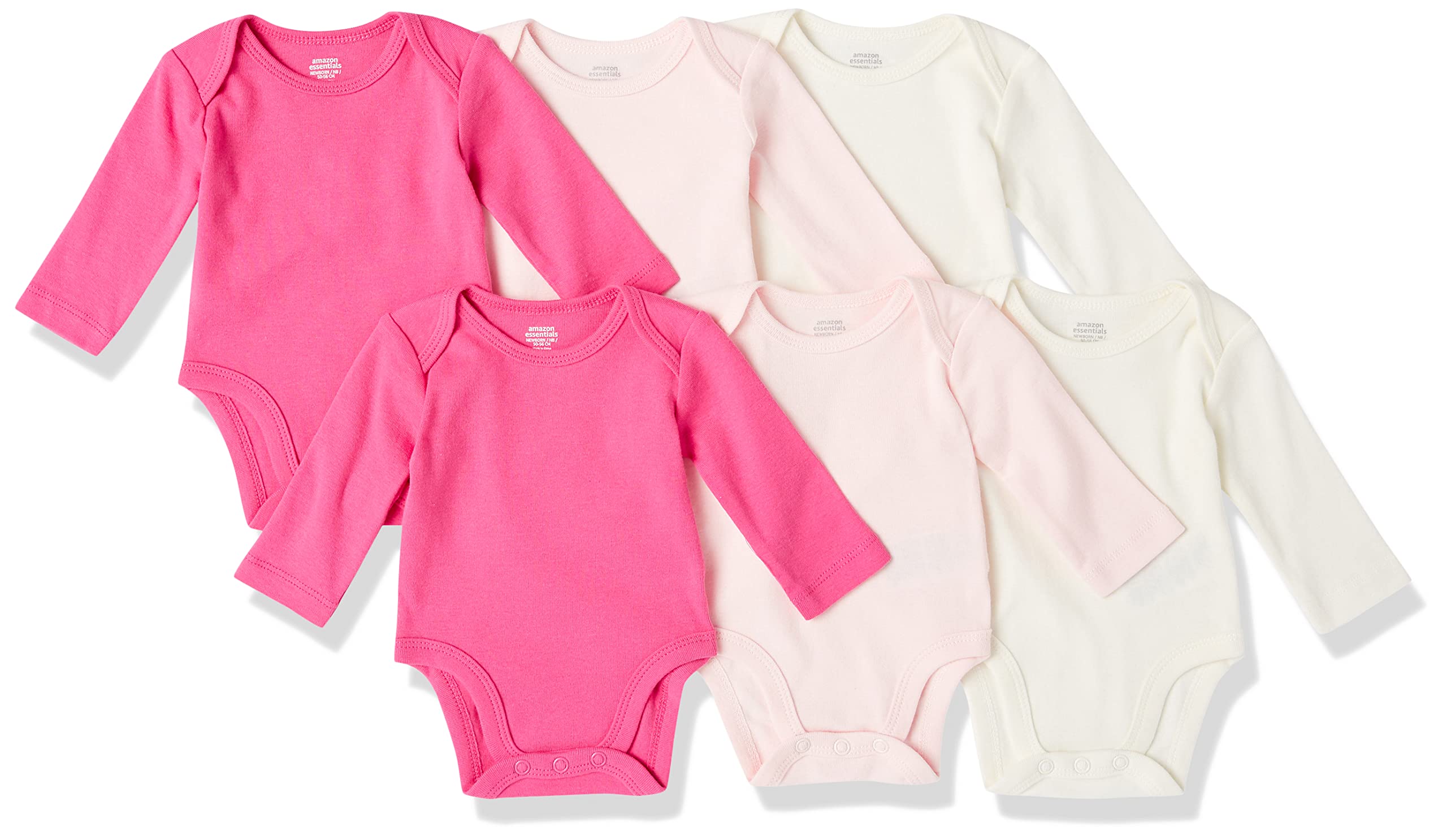 Amazon Essentials Unisex Babies' Long-Sleeve Bodysuits, Pack of 6, Pink/Light Pink/White, Preemie