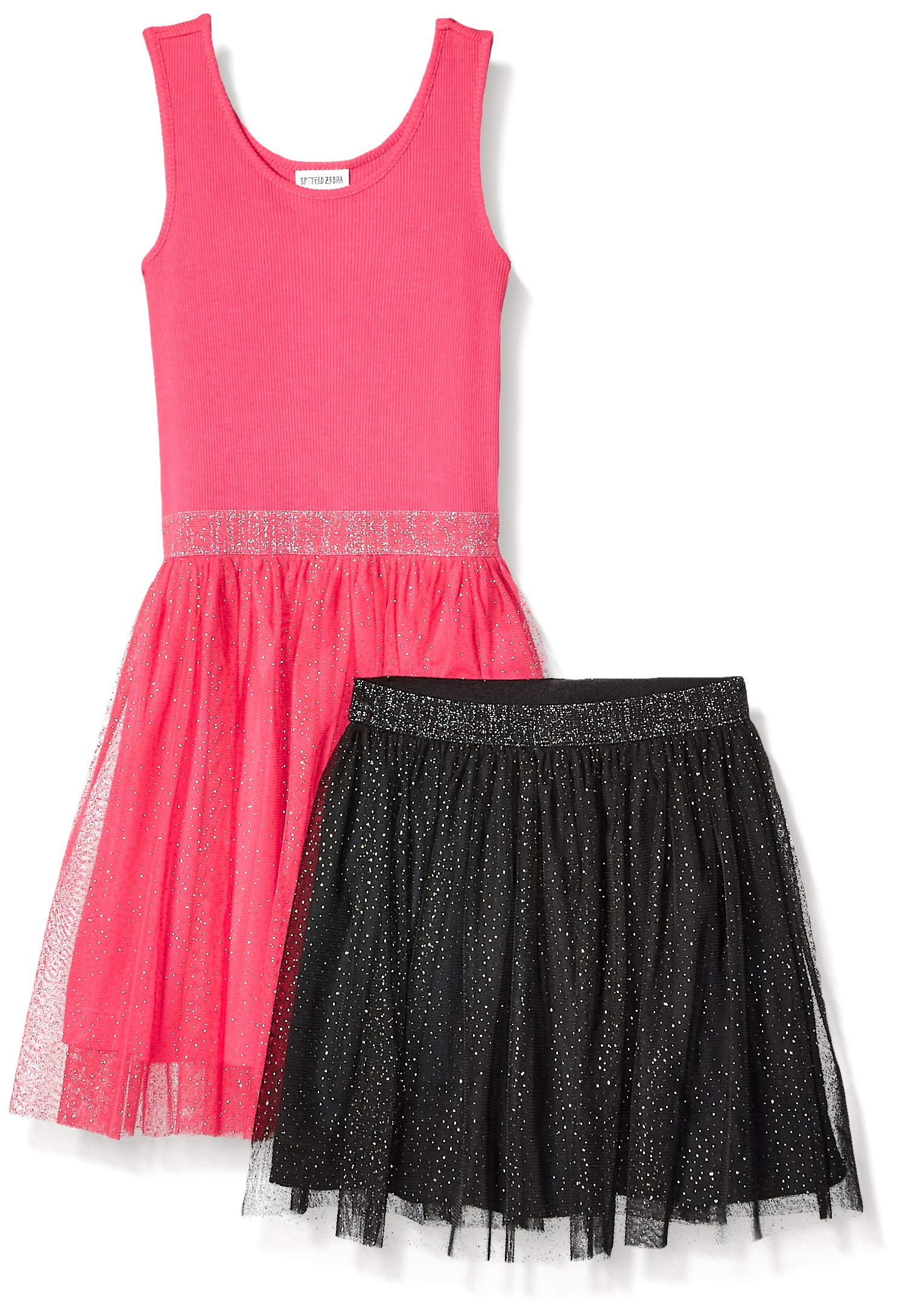Spotted Zebra Girls' Knit Sleeveless Tutu Tank Dress and Skirt Set, Black Sparkles/Dark Pink, Large