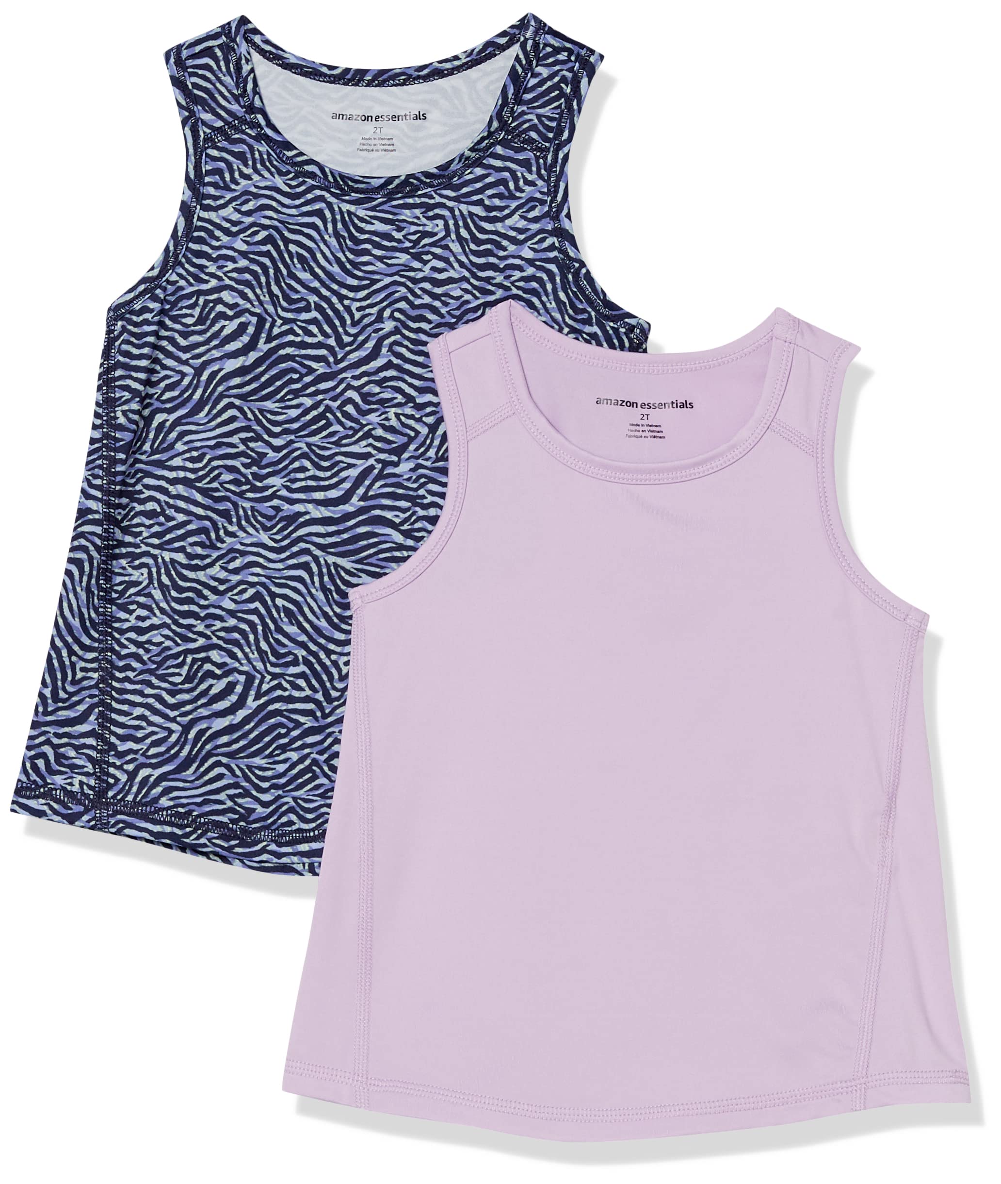 Amazon Essentials Toddler Girls' Active Tank, Pack of 2, Lavender Zebra, 4T
