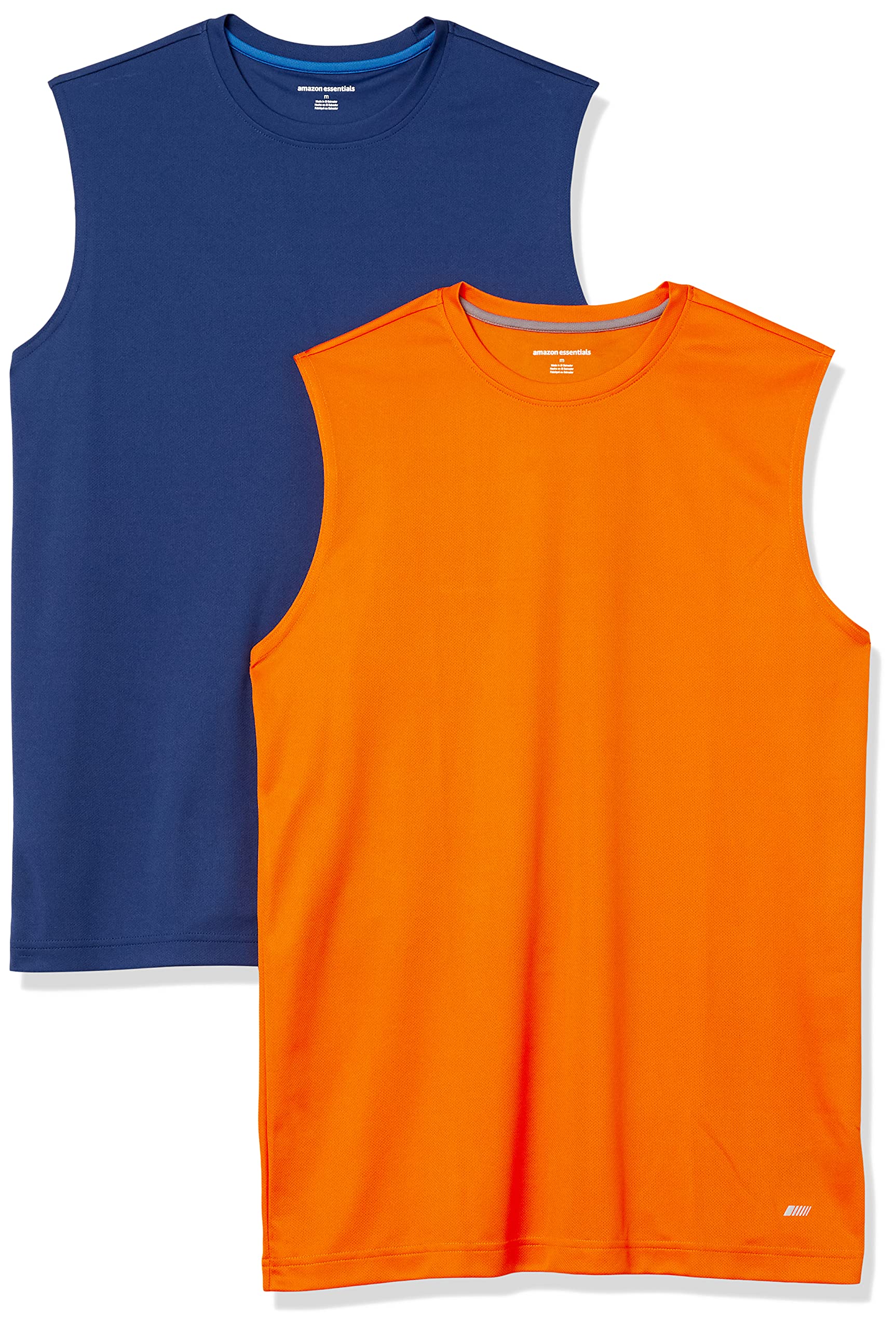 Amazon Essentials Men's Active Performance Tech Muscle Tank, Pack of 2, Orange/Navy, X-Small