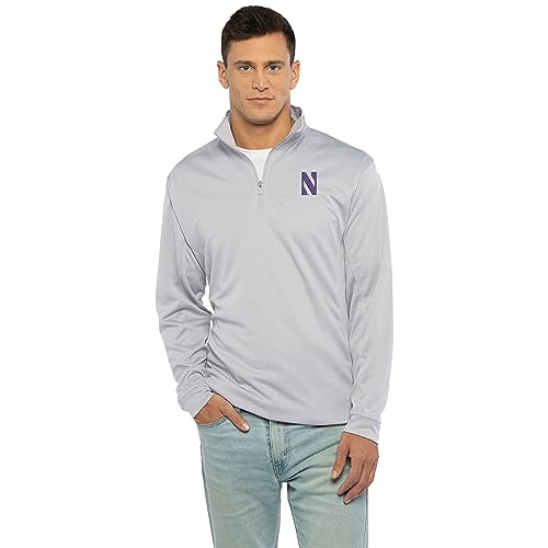 Vantage Apparel Men's Collegiate Micro Mesh Performance Gray 1/4 Zip Pullover, Northwestern Wildcats, Gray, XX-Large