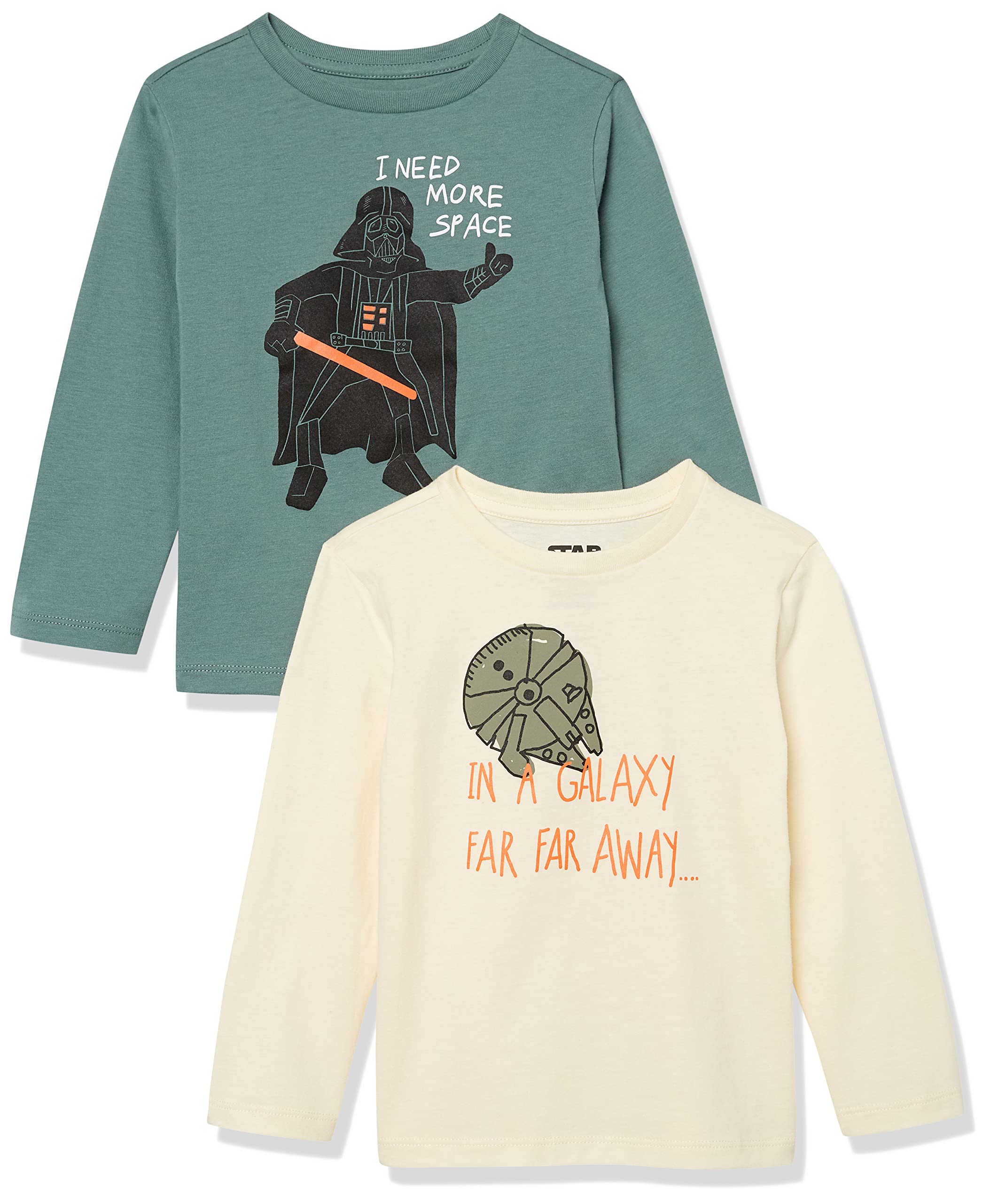 Amazon Essentials Disney | Marvel | Star Wars Boys' Long-Sleeve T-Shirts, Pack of 2, Star Wars Vader Galaxy, Small