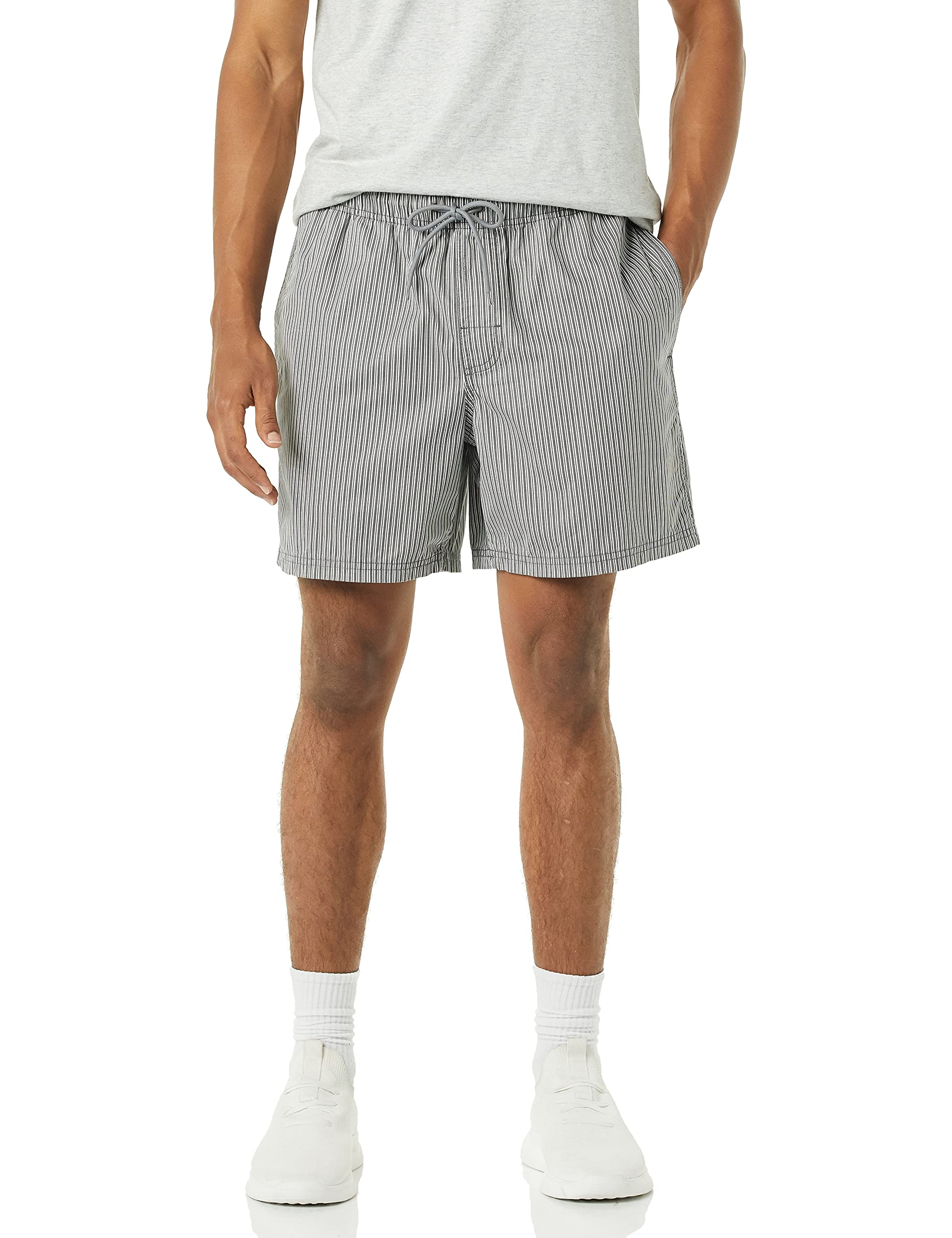 Amazon Essentials Men's 6" Inseam Drawstring Walk Short, Grey Vertical Stripe, Medium