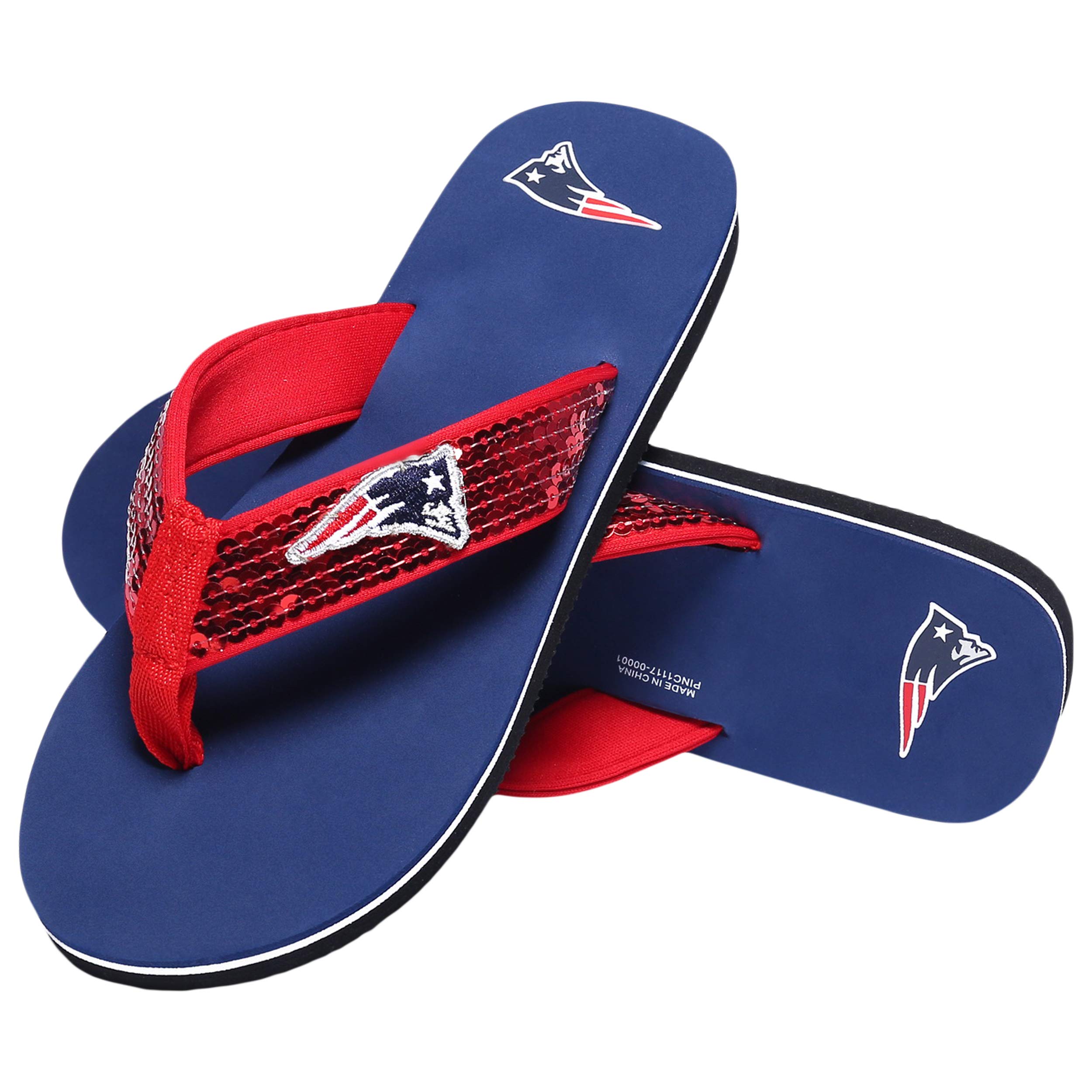 FOCO New England Patriots NFL Womens Sequin Flip Flops - M