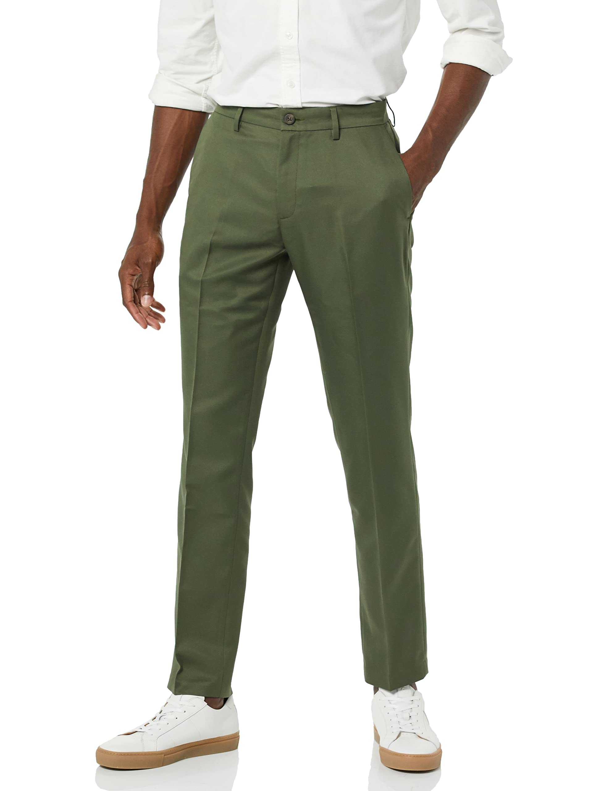 Amazon Essentials Men's Slim-Fit Flat-Front Dress Pant, Olive, 31W x 32L