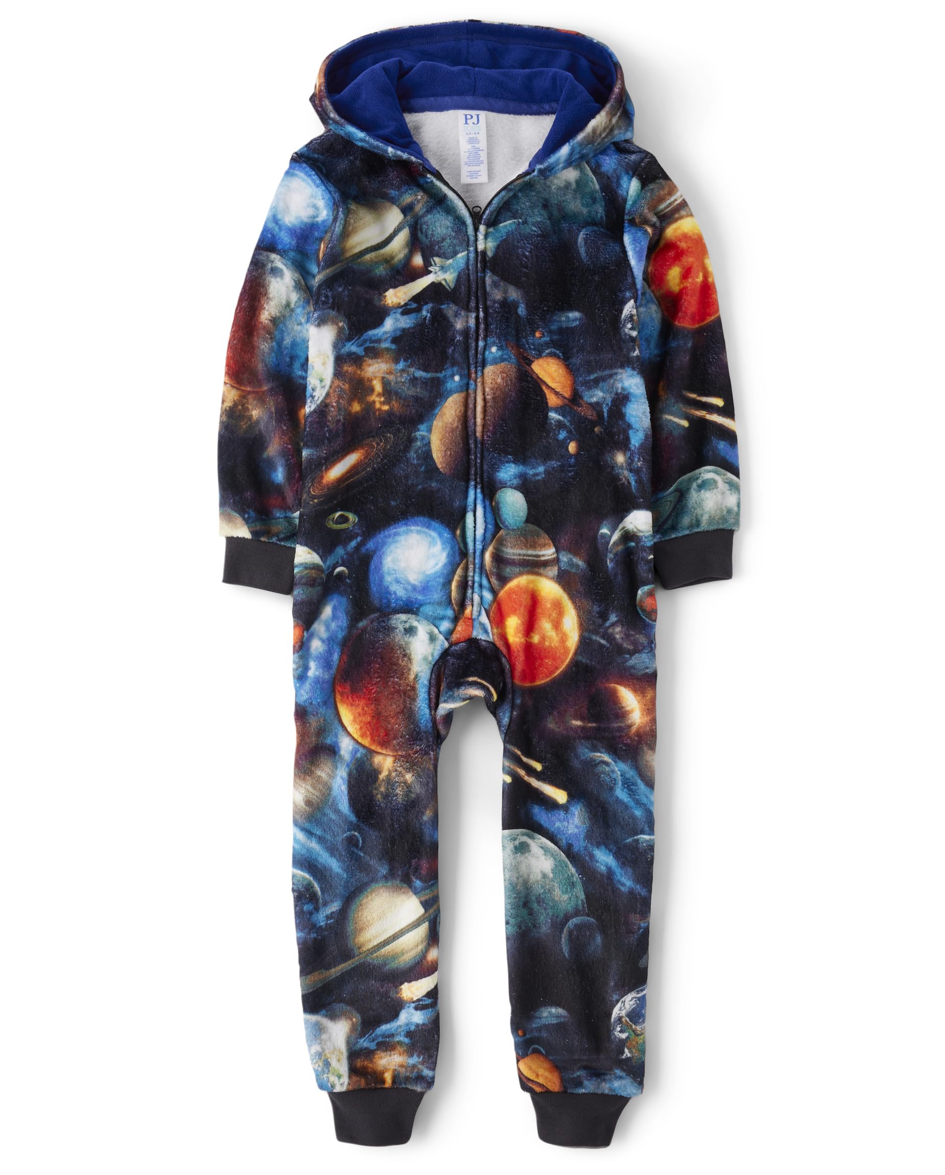 The Children's Place Boys' Long Sleeve Fleece Zip Up One Piece Pajama, Real Space