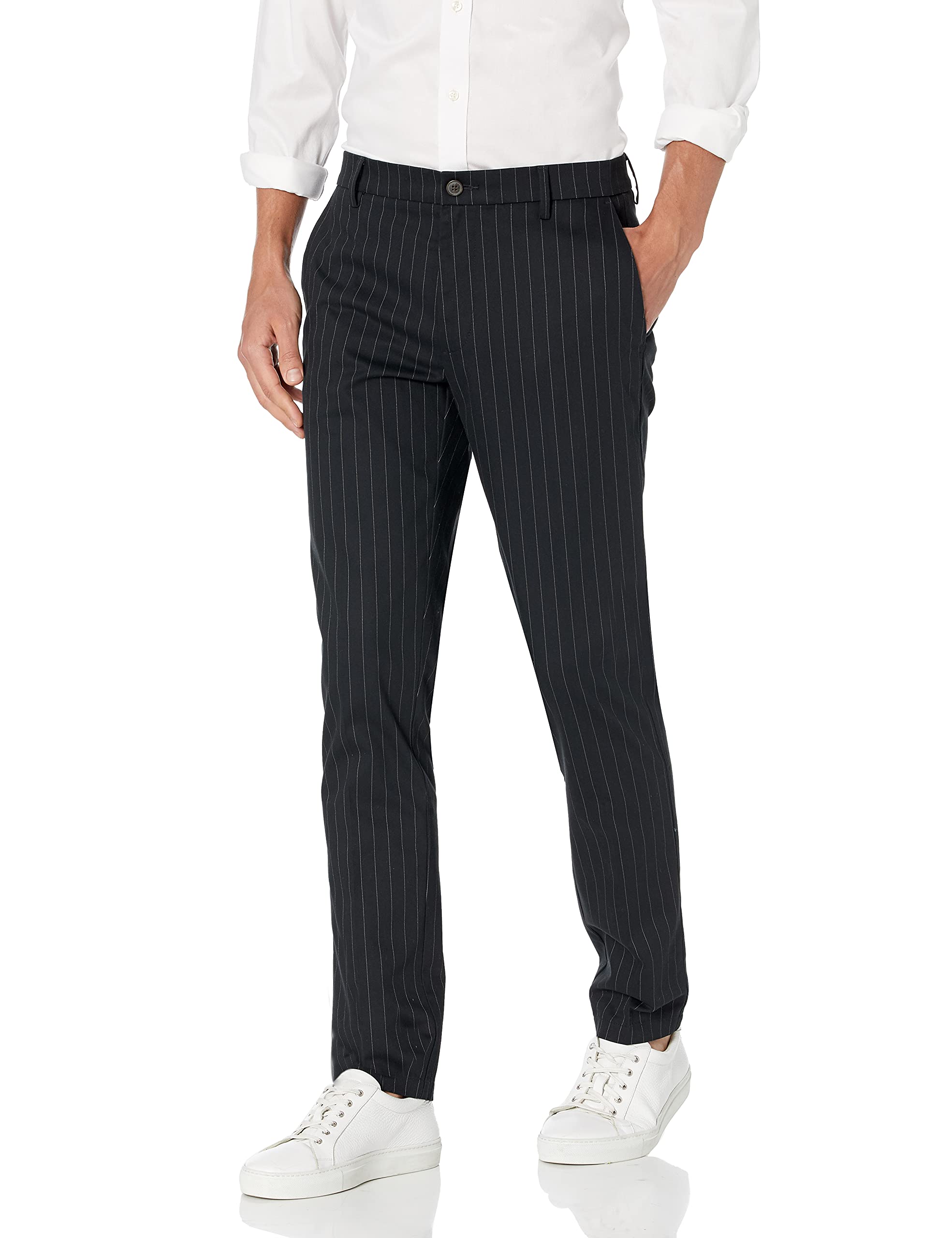 Goodthreads Men's Skinny-Fit Wrinkle-Free Comfort Stretch Dress Chino Pant, Black White Pinstripe, 34W x 31L