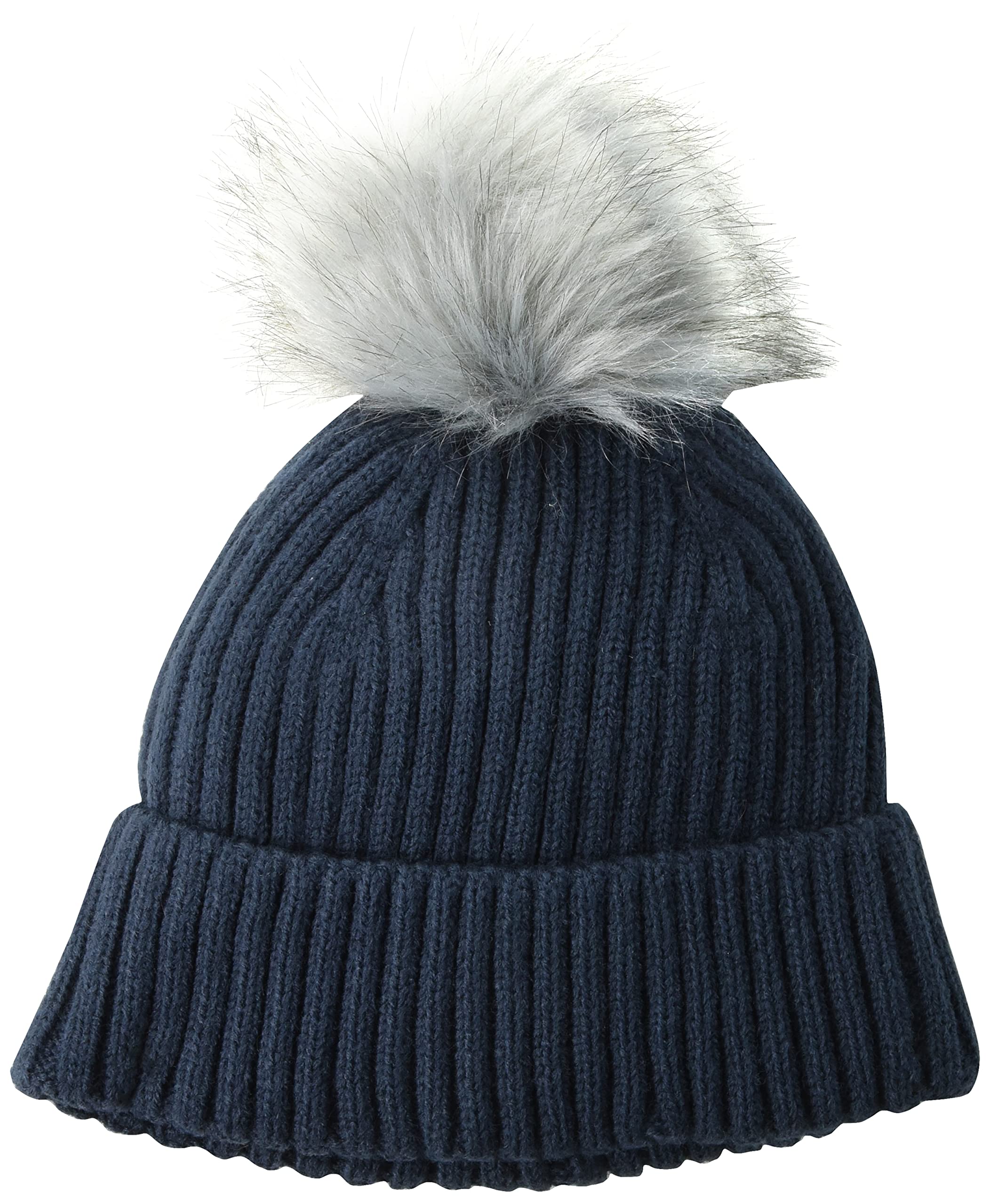 Amazon Essentials Women's Ribbed Beanie with Faux Fur Pom, Black, One size