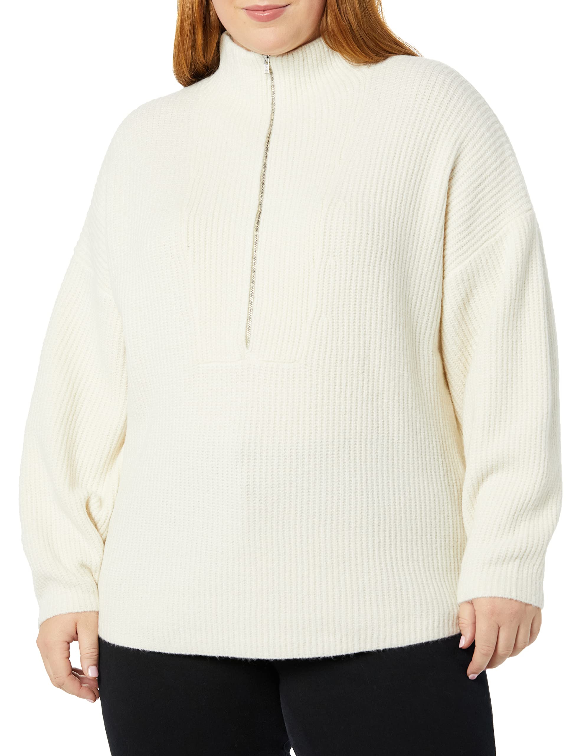 Amazon Essentials Women's Mid Gauge Stretch Half Zip Polo Collar Sweater (Previously Daily Ritual), Beige, XX-Large