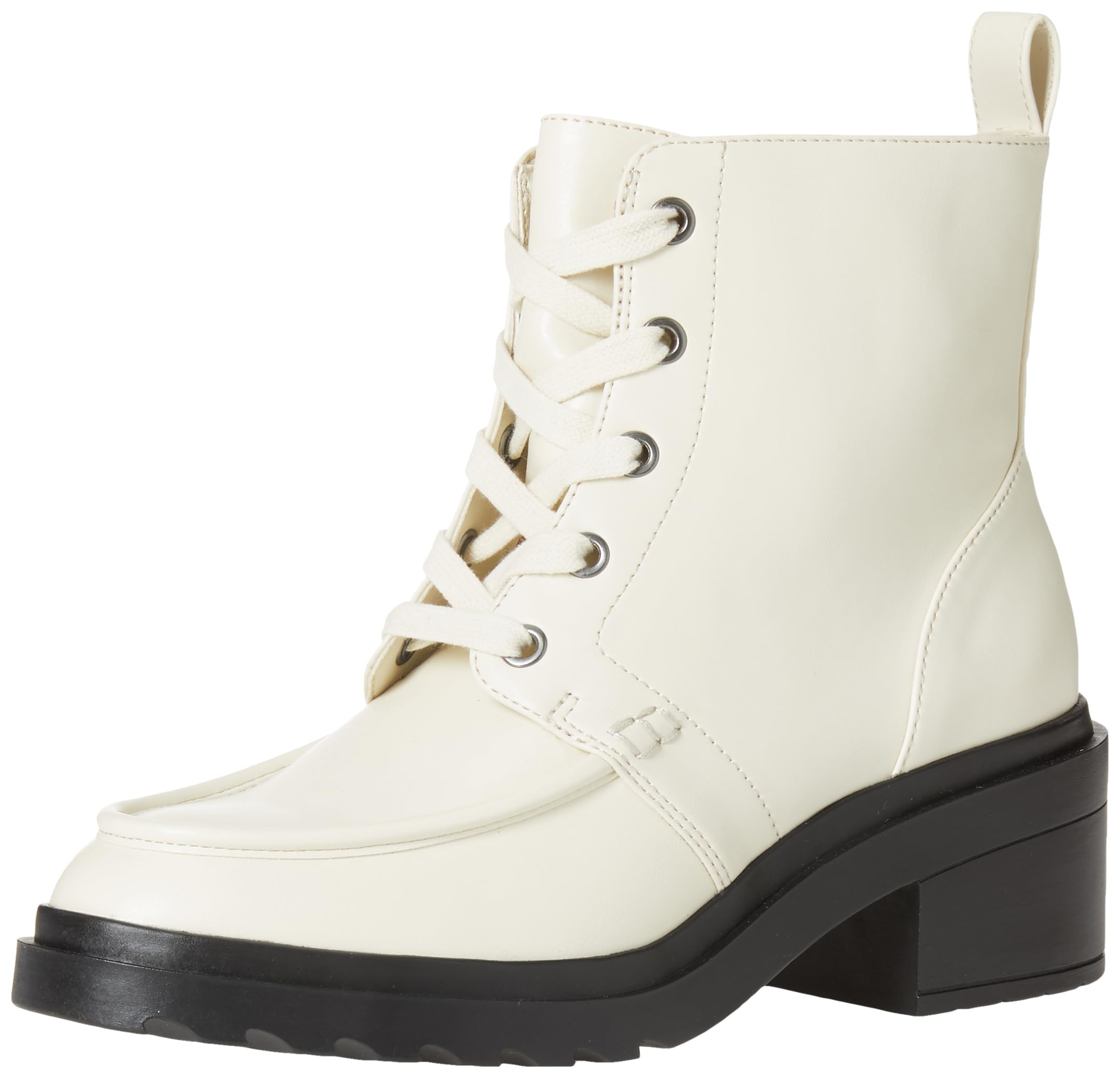 Amazon Essentials Women's Moc Toe Boot, Ecru Faux Leather, 9 Wide