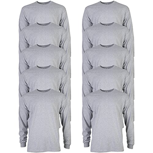 Gildan Men's Ultra Cotton Long Sleeve T-Shirt, Style G2400, Multipack, Sport Grey (10-Pack), Medium
