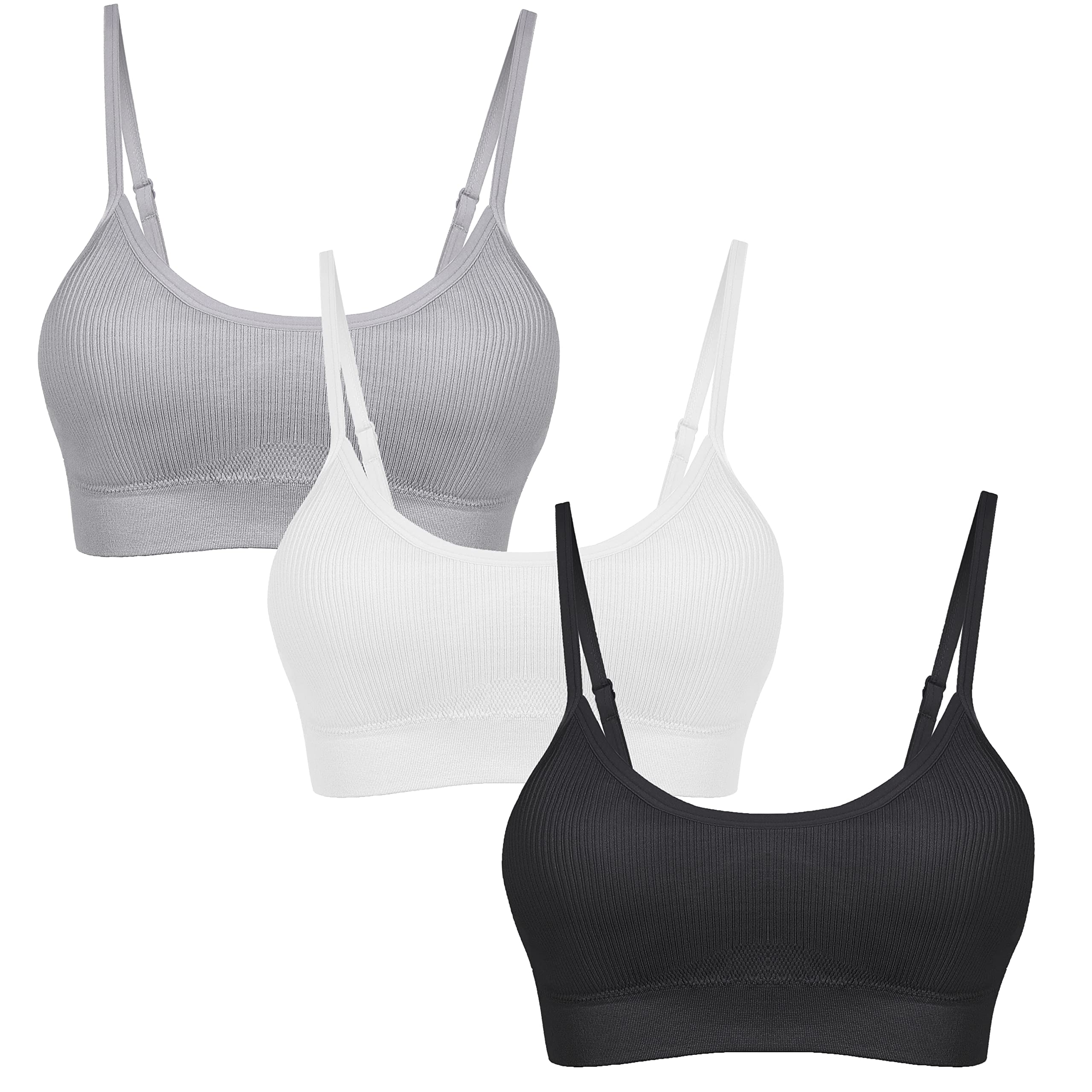 AKAMC Women's Removable Padded Sports Bras Medium Support Workout Yoga Bra 3 Pack,Grey/Black/White,Small