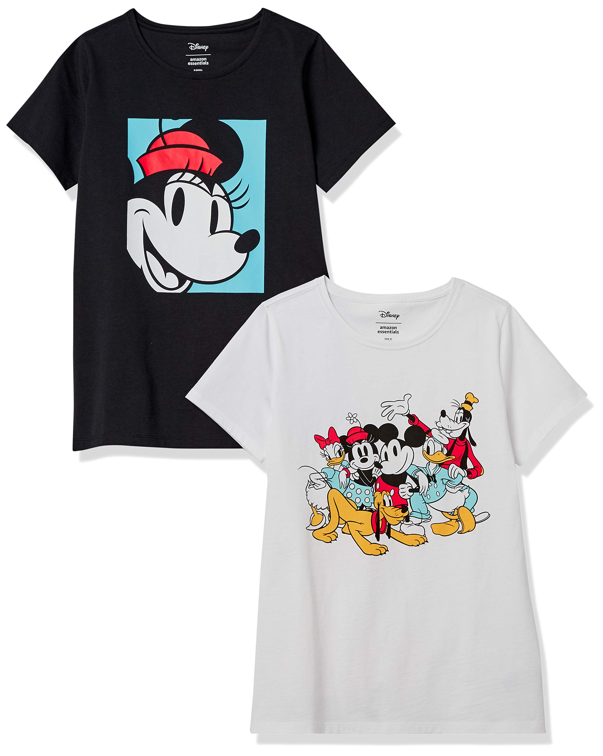 Amazon Essentials Disney | Marvel | Star Wars | Princess Women's Short-Sleeve Crew-Neck T-Shirts (Available in Plus Size), Pack of 2, Minnie and Friends, XX-Large