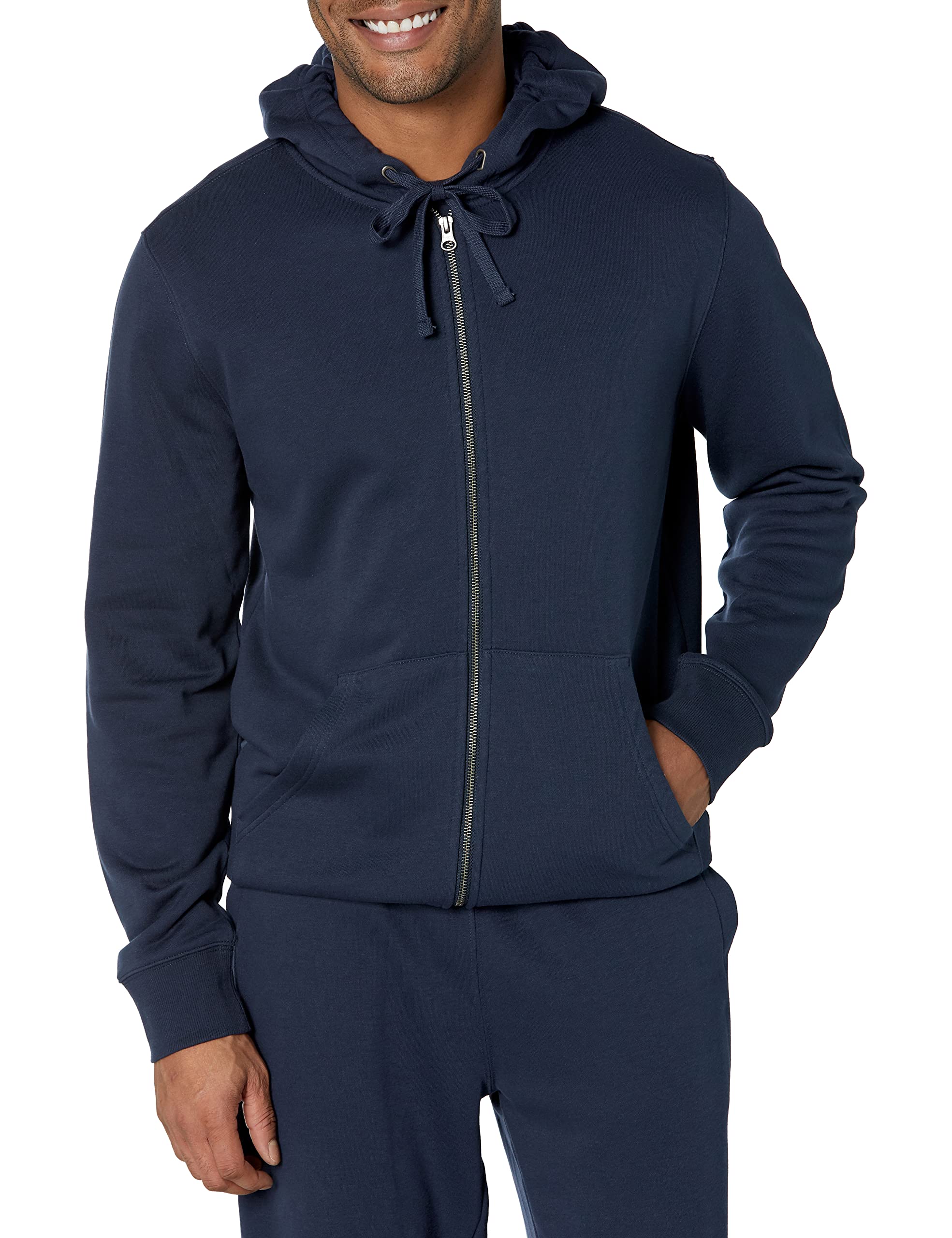Amazon Essentials Men's Lightweight Long-Sleeve French Terry Full-Zip Hooded Sweatshirt (Available in Big & Tall), Navy, X-Small