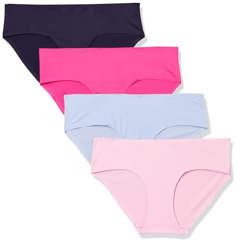 Amazon Essentials Women's Seamless Bonded Stretch Hipster Underwear, Pack of 4, Blue/Pink, X-Large