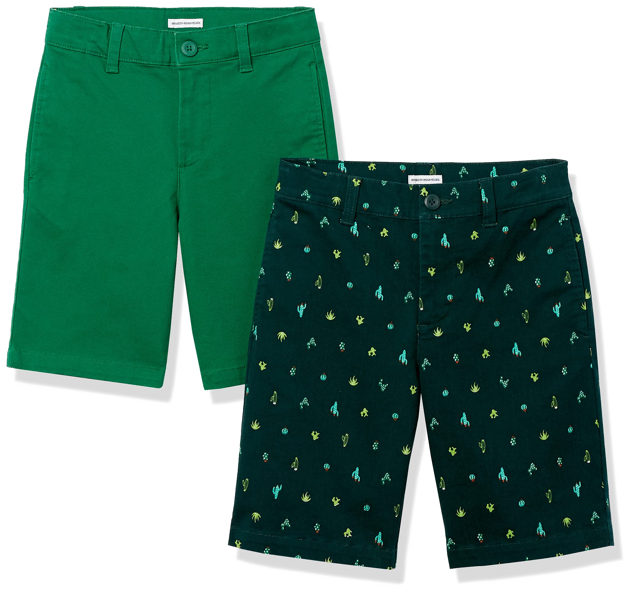 Amazon Essentials Boys' Uniform Woven Flat-Front Shorts, Pack of 2, Green/Cactus, 8 Slim