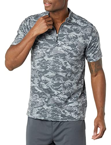 Amazon Essentials Men's Performance Soft Tech Short-Sleeve Quarter-Zip Shirt, Iron Grey Abstract, Large