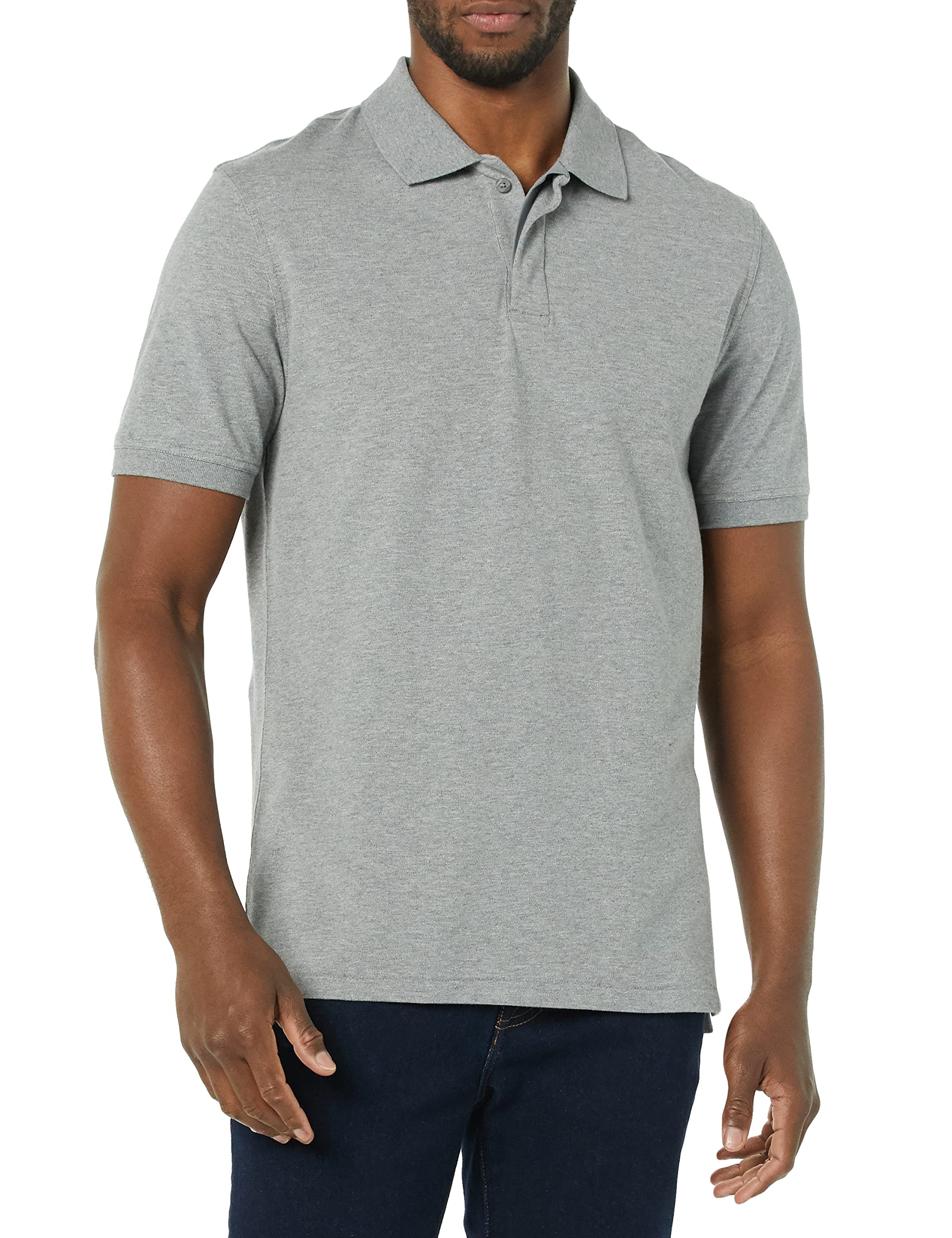 Amazon Aware Men's Lightweight Cotton Pique Short Sleeve Polo Shirt, Medium Grey Heather, Small