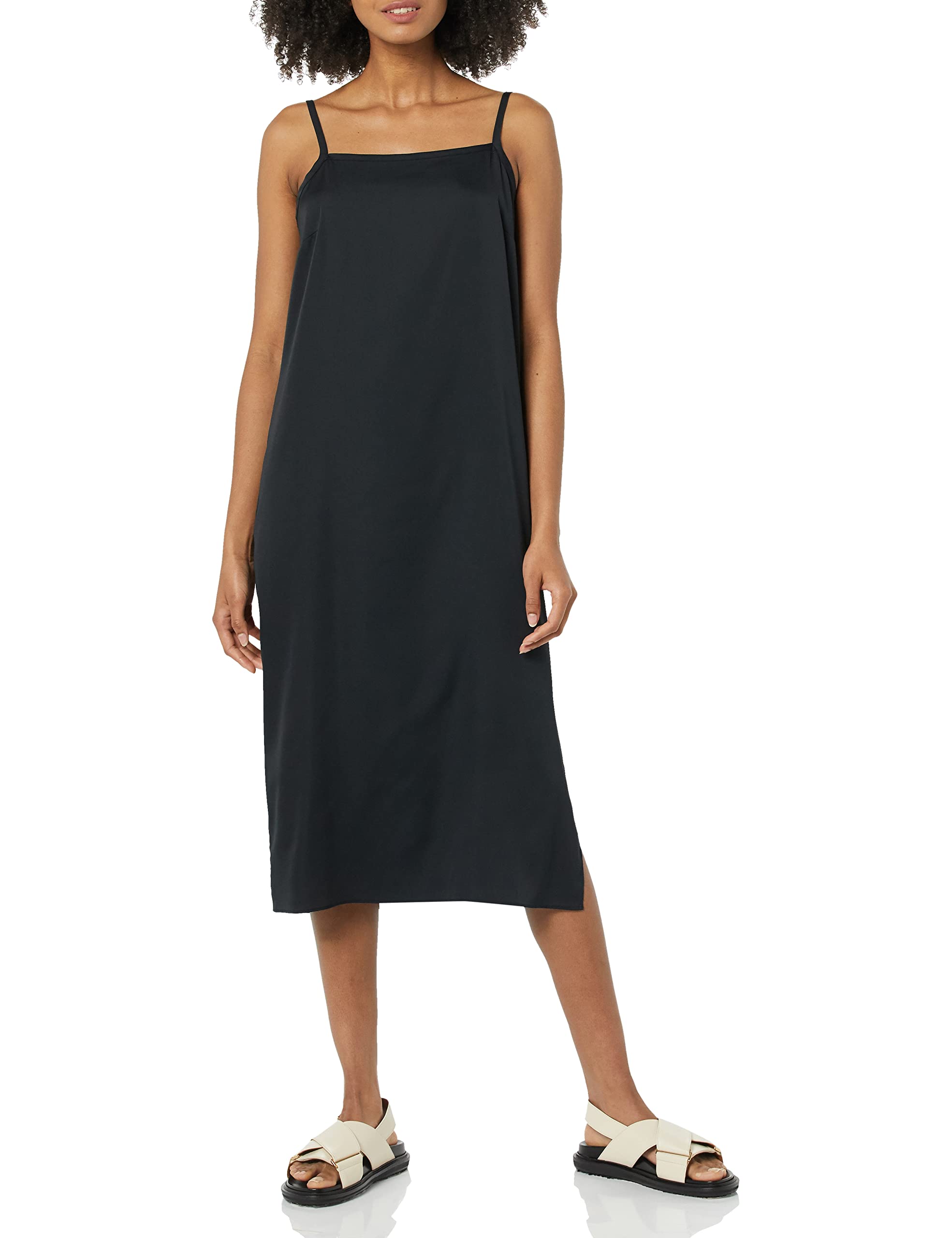 Amazon Aware Women's Recycled Polyester Stretch Satin Georgette Strap Midi Dress (Available in Plus Size), Black, XX-Small