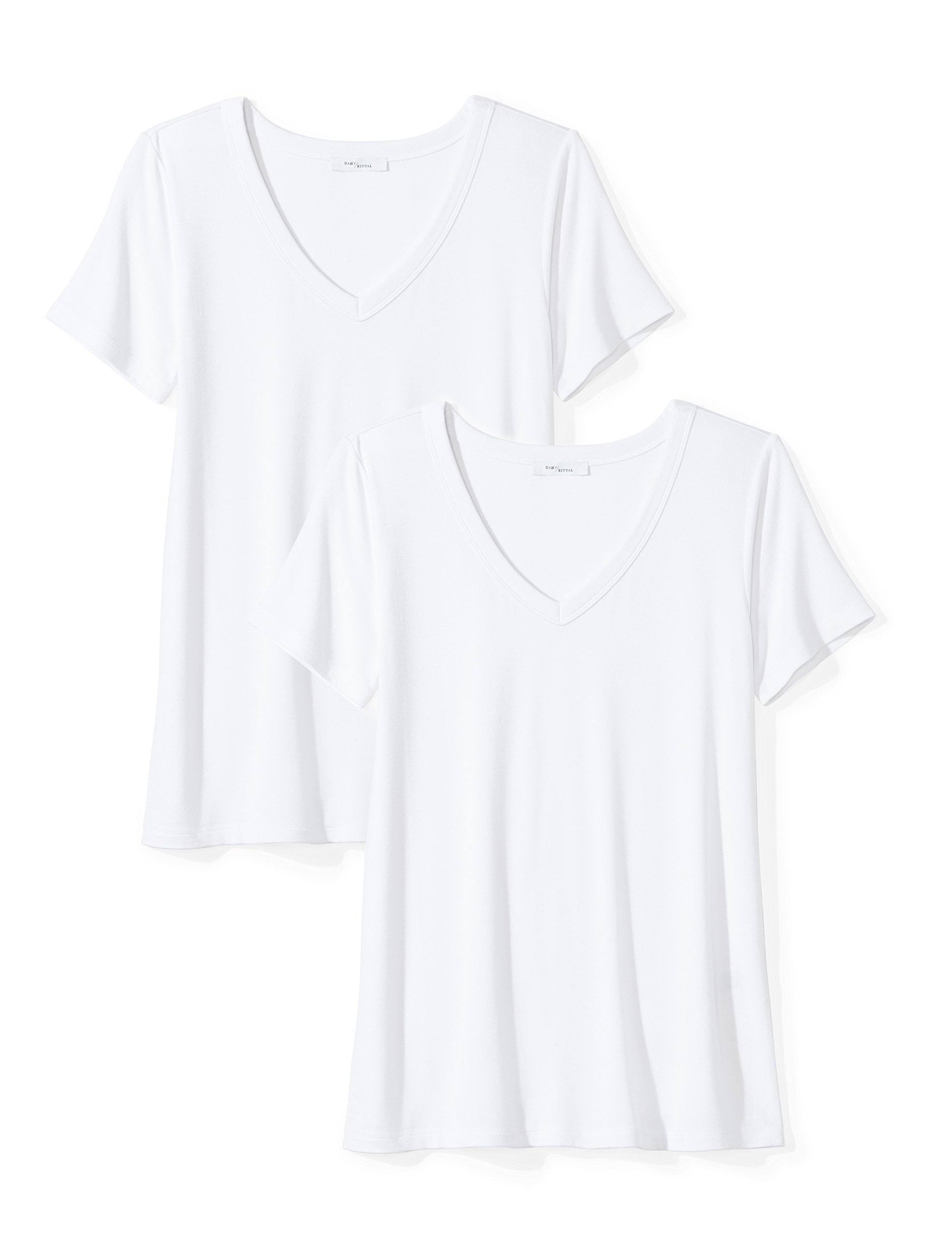 Amazon Essentials Women's Jersey Standard-Fit Short-Sleeve V-Neck T-Shirt (Previously Daily Ritual), Pack of 2, White, X-Small
