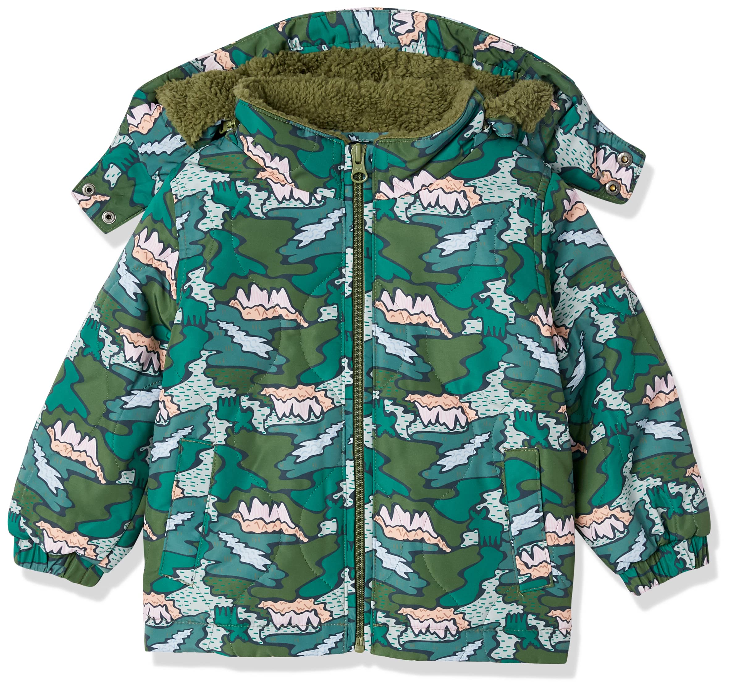 Amazon Essentials Unisex Kids' Recycled Polyester Sherpa Lined Quilted Jacket (Previously Amazon Aware), Green Print, Small