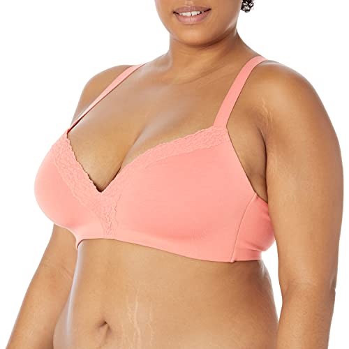 Amazon Essentials Women's Cotton and Lace Lightly Lined Wirefree Bra, Salmon Pink, 36B
