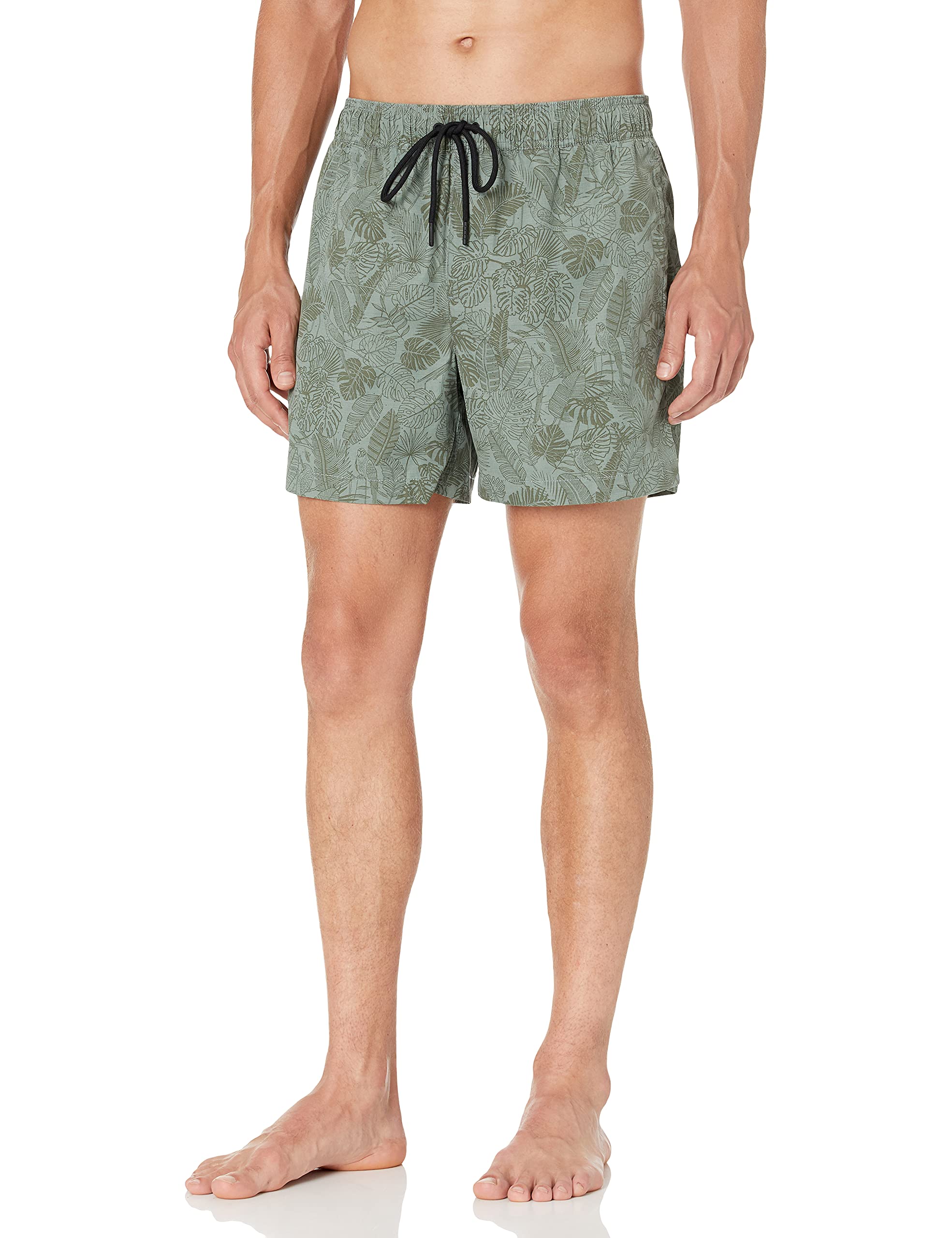 Goodthreads Men's 5" Swim Trunk, Green, Parrot Print, 3X-Large