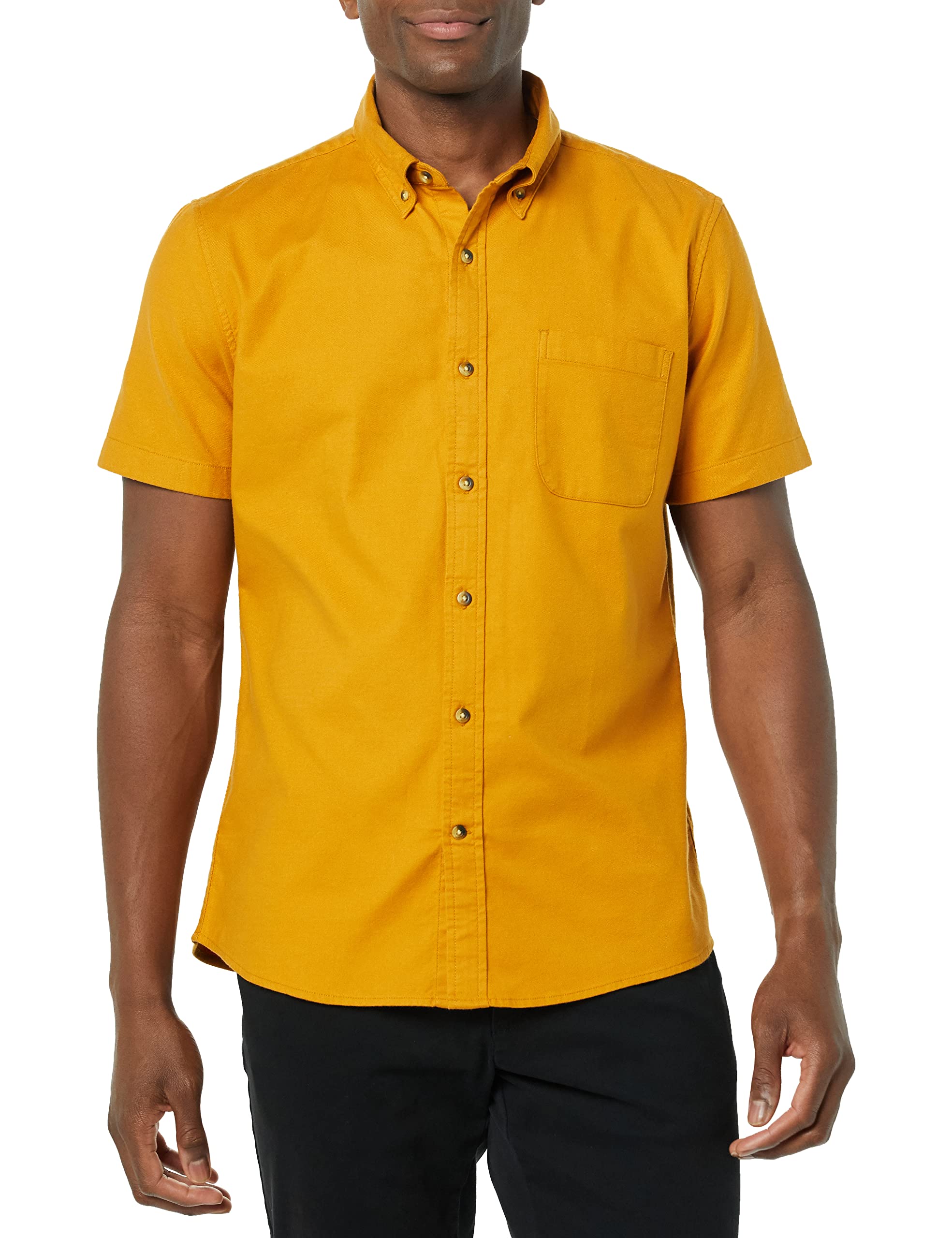 Goodthreads Men's Slim Fit Short Sleeve Pocket Shirt, Dark Golden Yellow, Large
