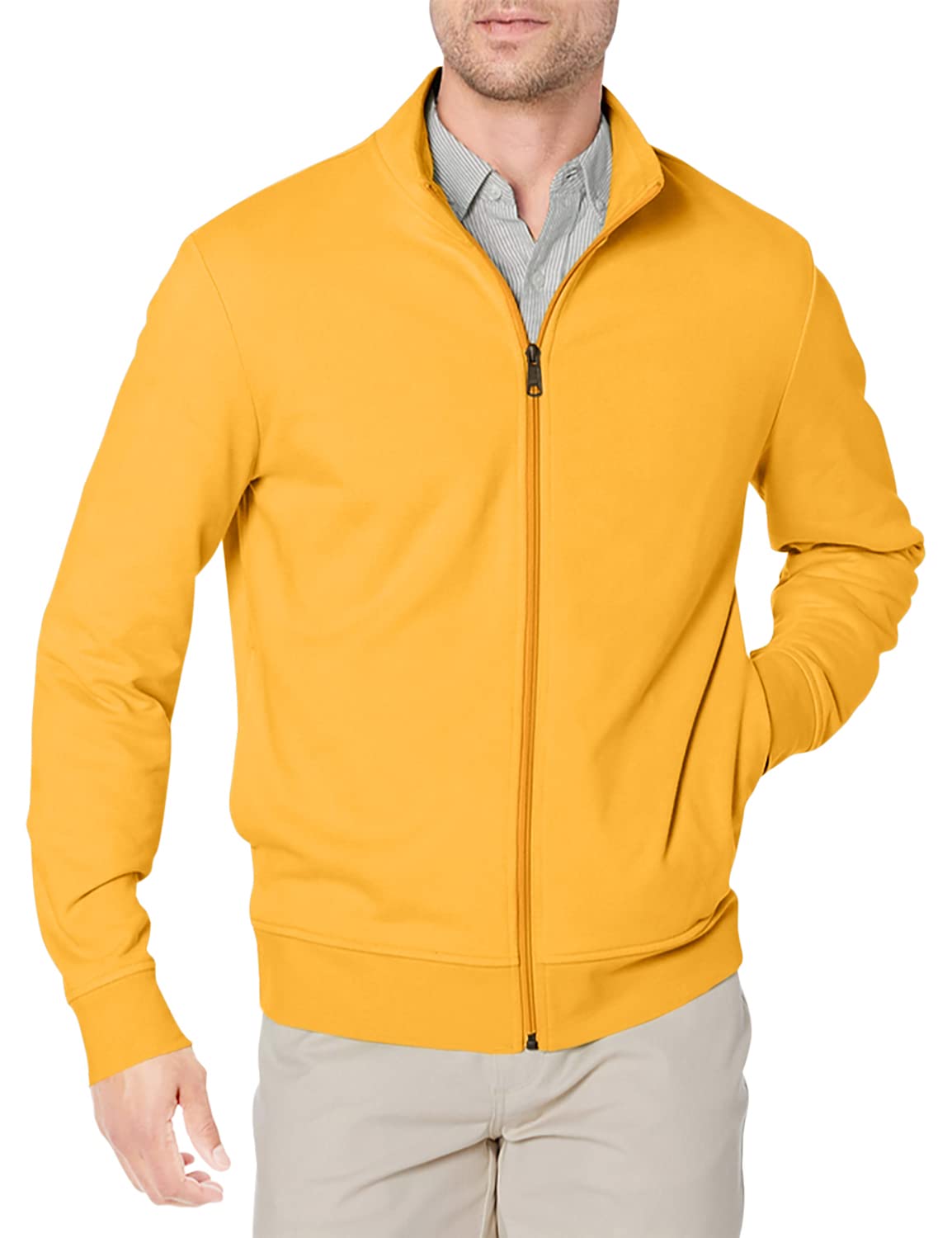 Amazon Essentials Men's Lightweight French Terry Full-Zip Mock Neck Sweatshirt, Golden Yellow, Small