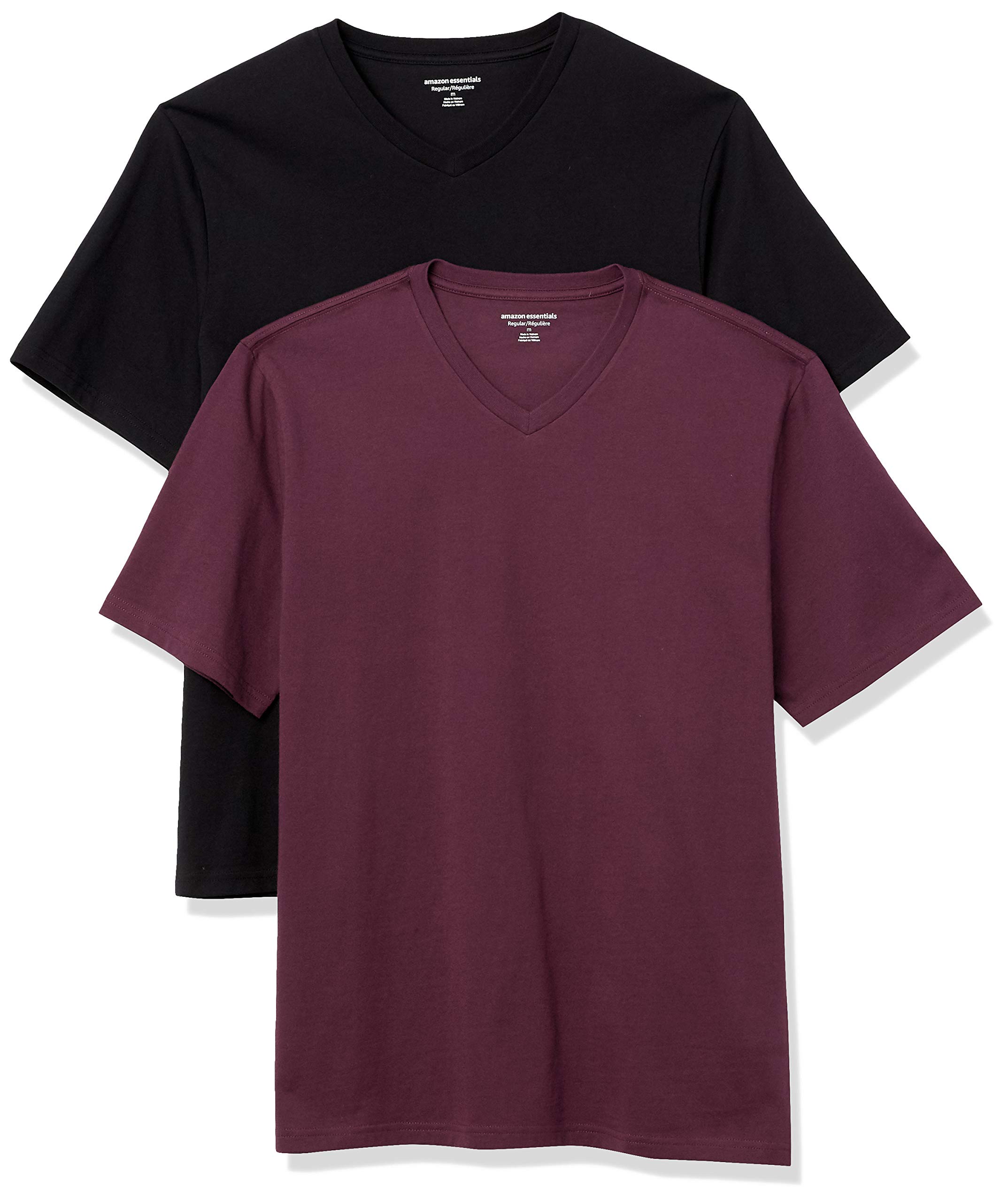 Amazon Essentials Men's Regular-Fit Short-Sleeve V-Neck T-Shirt, Pack of 2, Burgundy/Black, X-Small