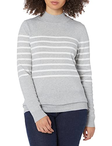 Amazon Essentials Women's Lightweight Mockneck Sweater (Available in Plus Size), Light Grey Heather White Placed Stripe, Small