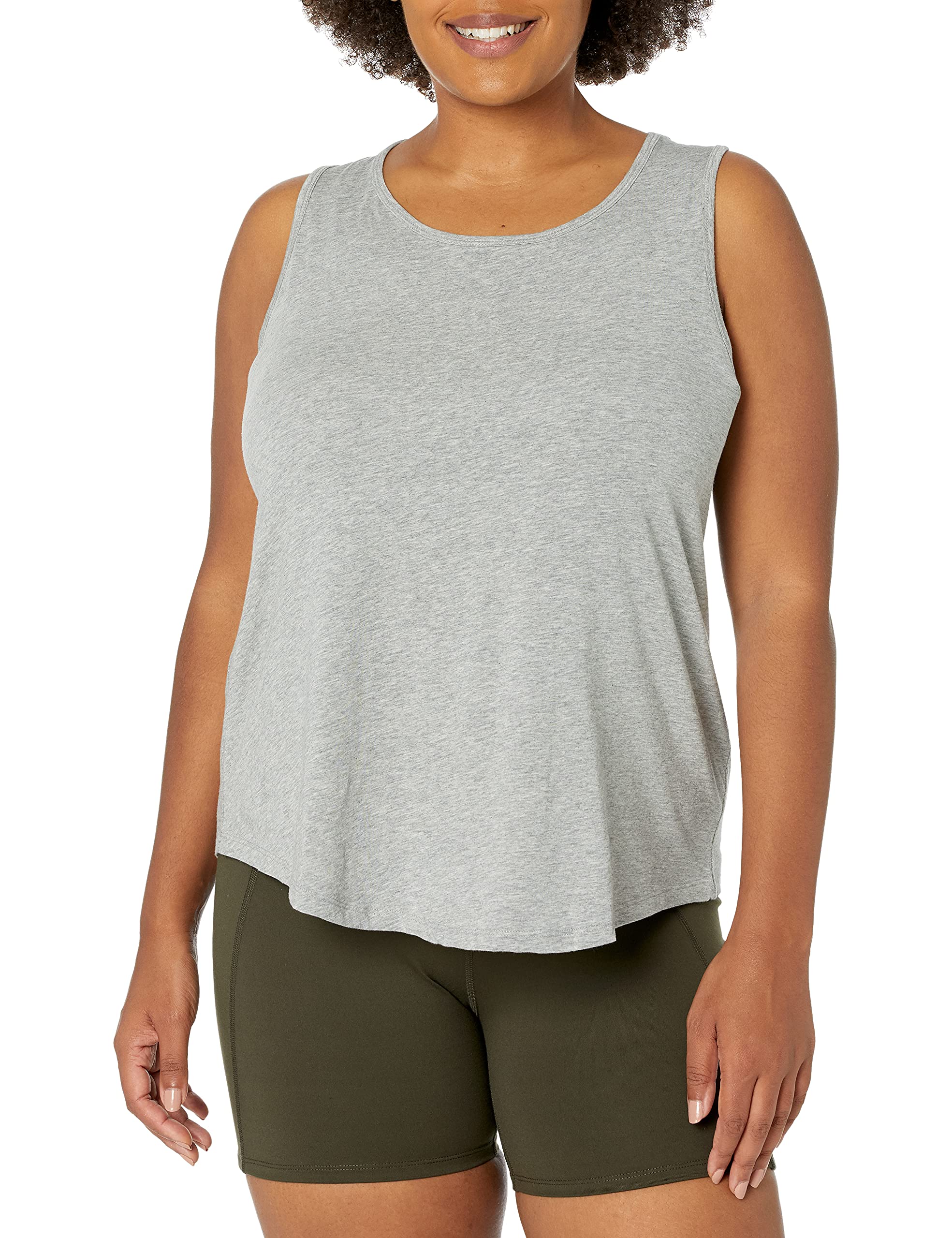 Amazon Essentials Women's Soft Cotton Open Back Sleeveless Yoga Tank (Available in Plus Size) (Previously Core 10), Light Grey Heather, Small