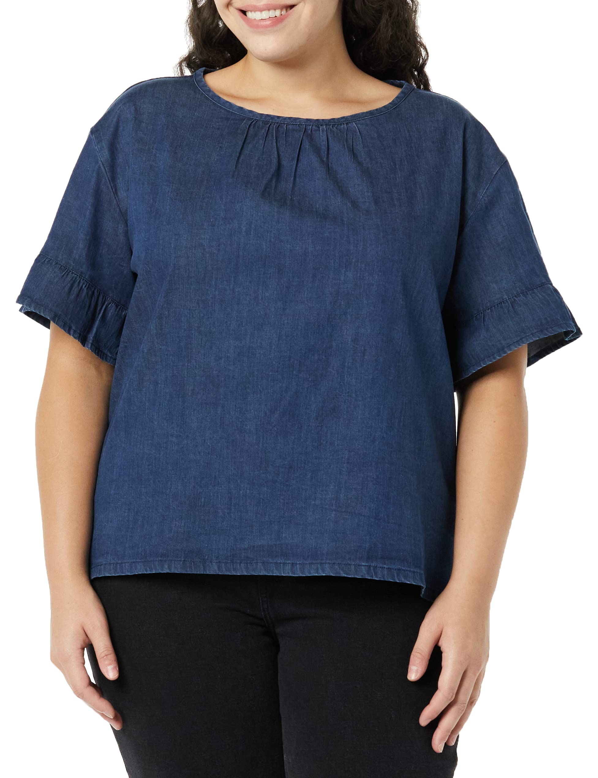 Goodthreads Women's Denim Relaxed Fit Sleeve Woven Shirt, Indigo, X-Small