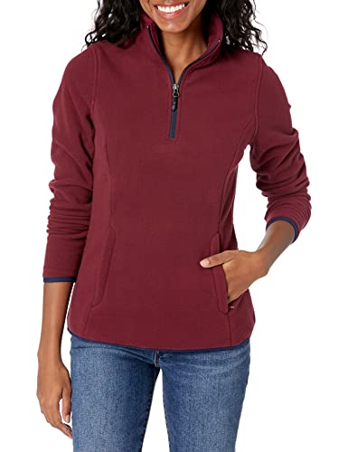Amazon Essentials Women's Classic-Fit Long-Sleeve Quarter-Zip Polar Fleece Pullover Jacket (Available in Plus Size), Burgundy Navy, Small
