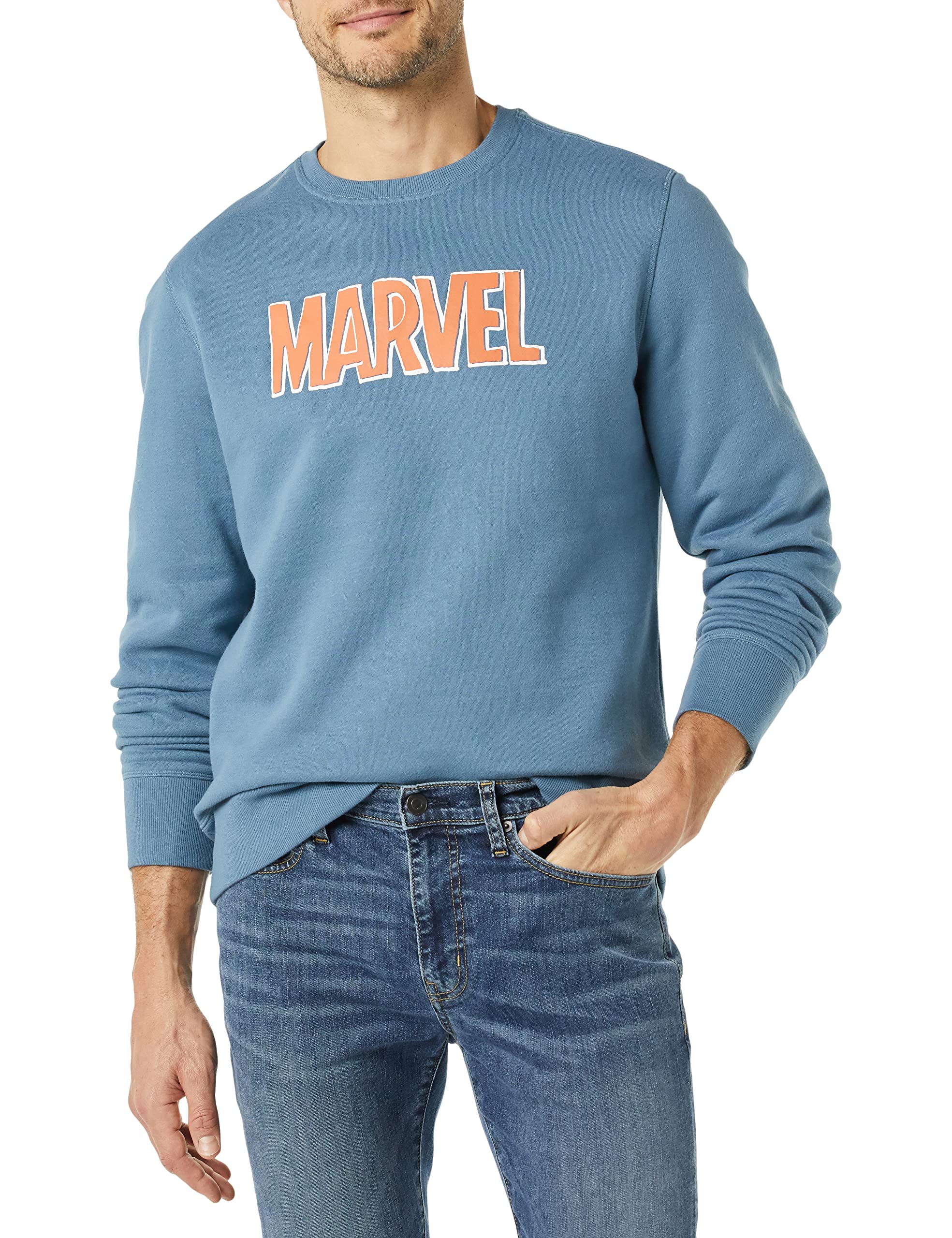 Amazon Essentials Disney | Marvel | Star Wars Men's Fleece Crewneck Sweatshirt, Marvel Logo, XX-Large