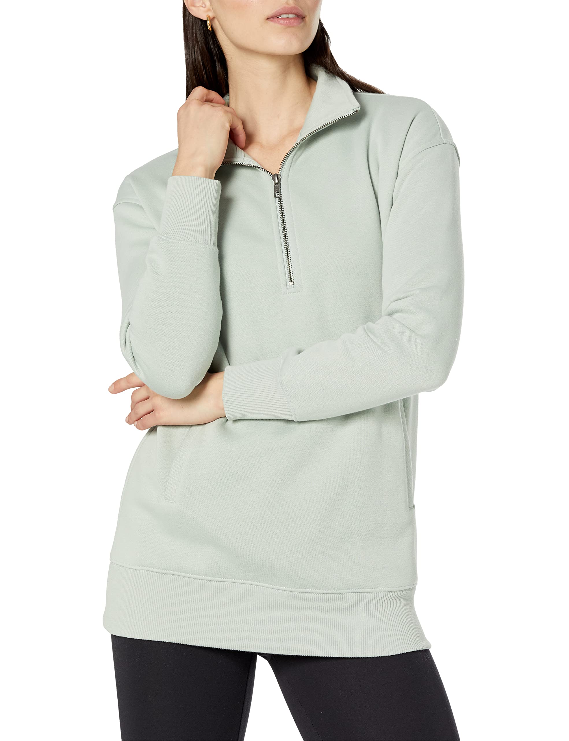 Amazon Aware Women's Relaxed-Fit Half Zip Tunic Sweatshirt (Available in Plus Size), Light Sage Green, Large