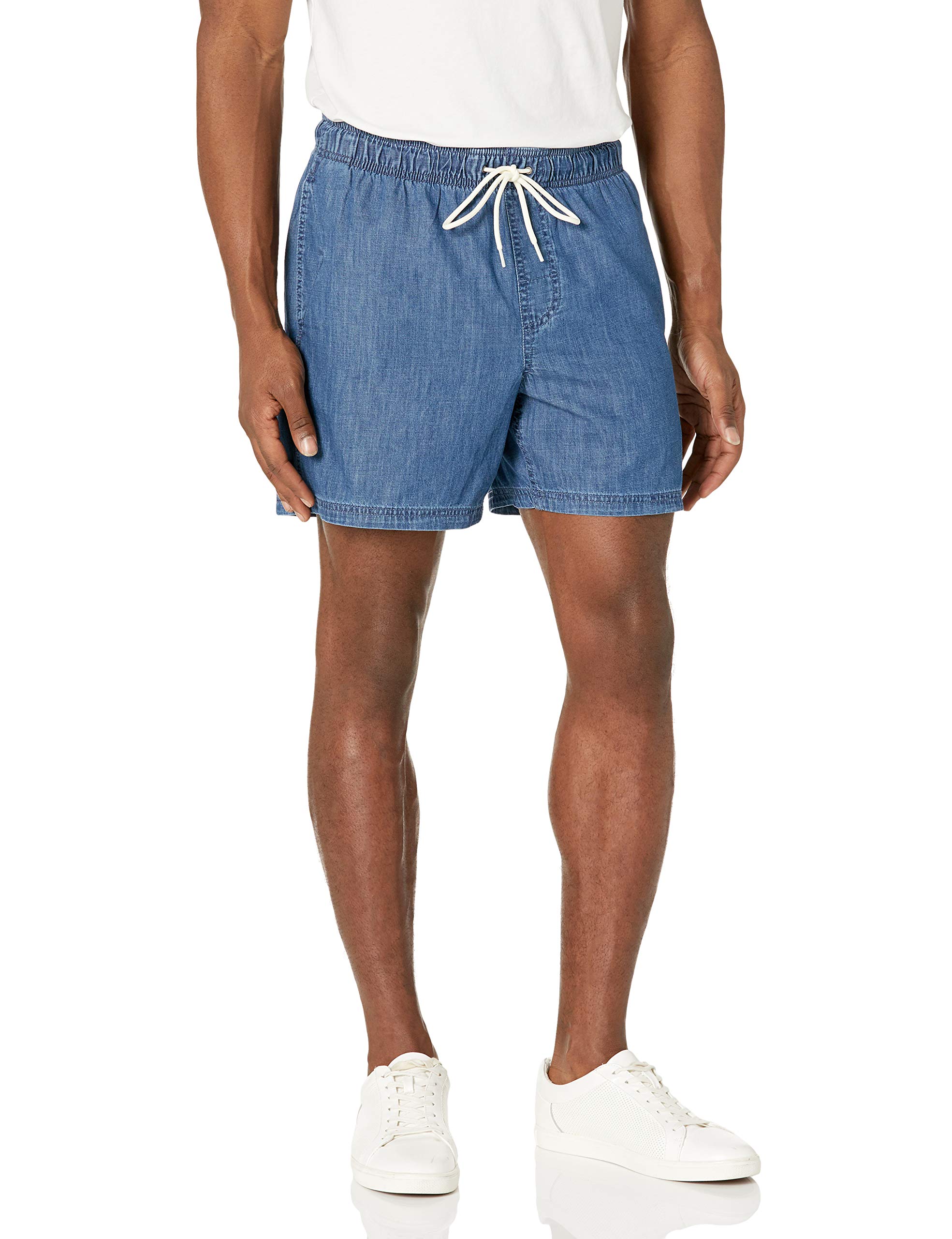 Amazon Essentials Men's 6" Inseam Drawstring Walk Short, Medium Wash Chambray, Medium
