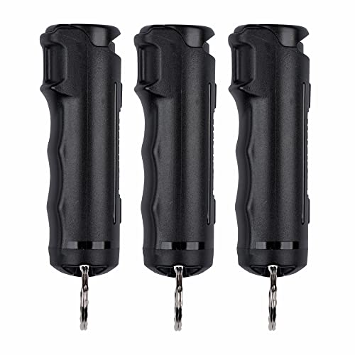 SABRE Pepper Spray with Fast Flip Top, Maximum Police Strength OC Spray, Key Ring for Easy Carry and Fast Access, Finger Grip for More Accurate and Faster Aim, 0.54 fl oz, Secure and Easy to Use