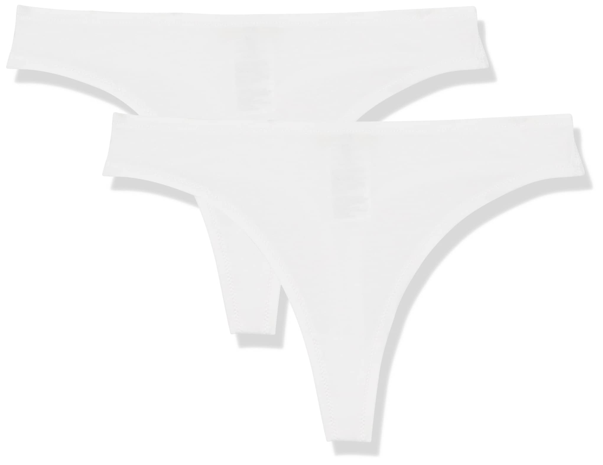 Amazon Aware Women's Super Soft Cotton Mid-Rise Thong Underwear, Pack of 2, White, X-Small