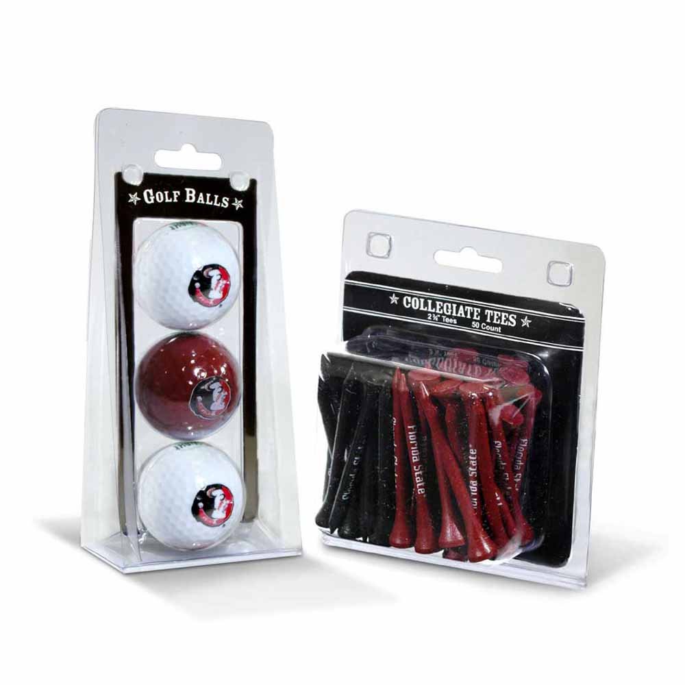 Team Golf NCAA Florida State Seminoles 3 Golf Balls And 50 Golf Tees Logo Imprinted Golf Balls (3 Count) & 2-3/4" Regulation Golf Tees (50 Count), Multi Colored