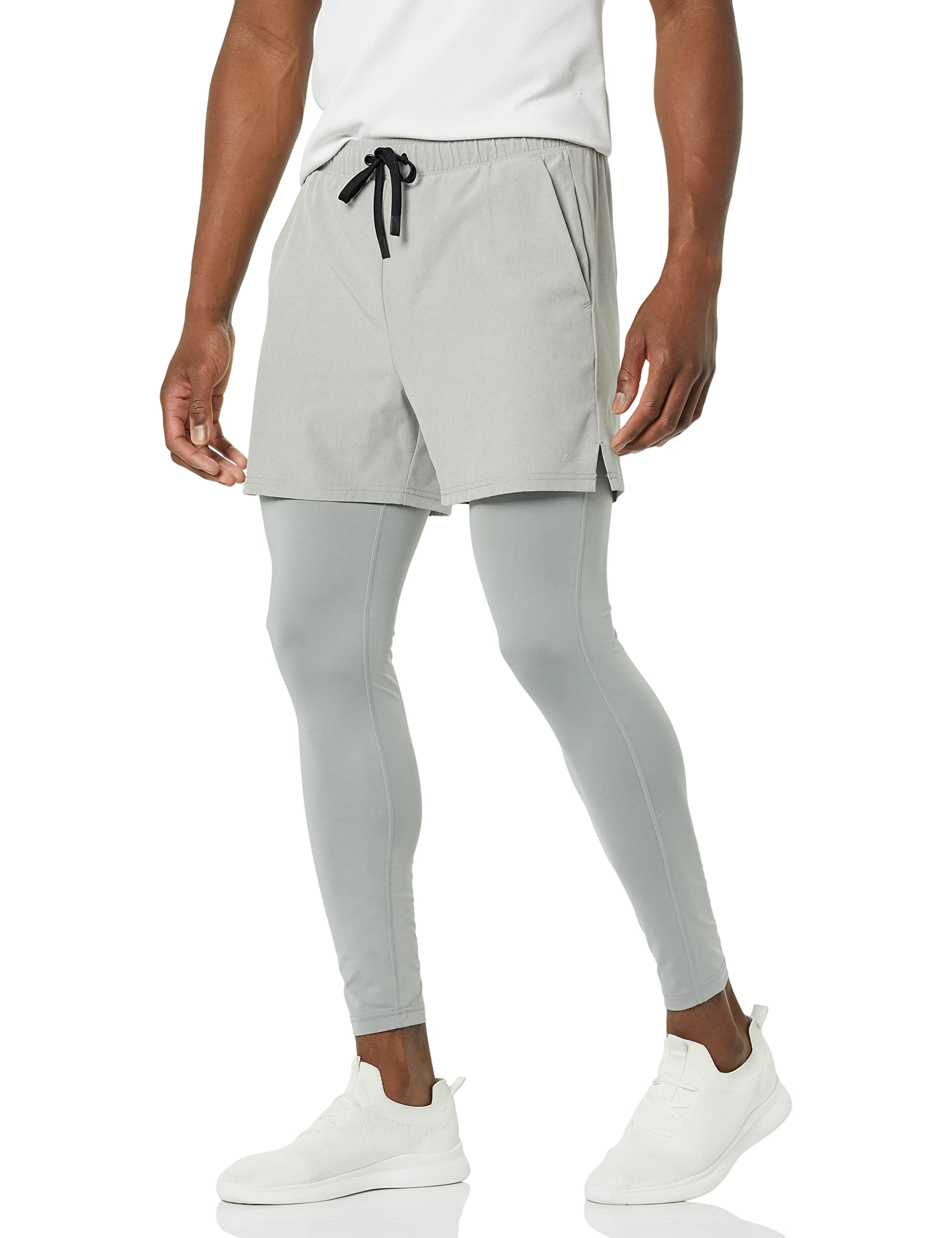 Amazon Essentials Men's Double Layered Woven Moisture Wicking Running Shorts, Light Grey, Large