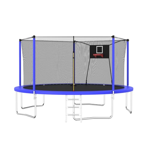FurGenius 12FT 14FT 15FT 16FT Trampoline, Outdoor Recreational Trampolines for Kids and Adults with Enclosure Net & Ladder, ASTM Approved, 1500 LBS Weight Capacity