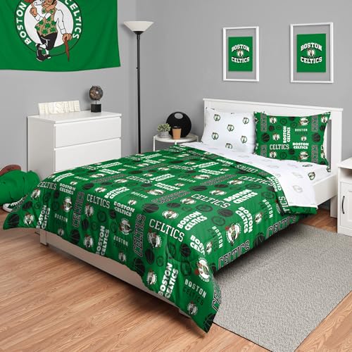 FOCO Boston Celtics NBA Team Color Bed in a Bag Comforter Bedding 5 Piece Set - Twin
