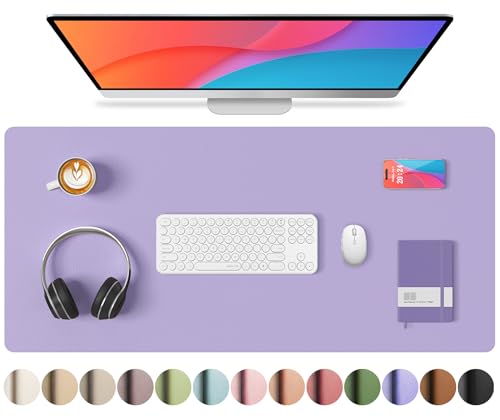 Leather Desk Pad Protector, Mouse Pad, Non-Slip Computer Mat, PU Leather Office Mat for Home & Office, Waterproof Laptop Desk Blotter for Keyboard and Mouse, Soft Violet (15.7''X31.5'')