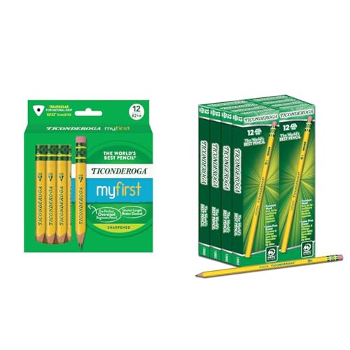 Ticonderoga My First Short Triangular Wood-Cased Pencils, 2 HB Soft, 12 Count Wood-Cased Pencils, #2 HB Soft, Yellow, 96 Count