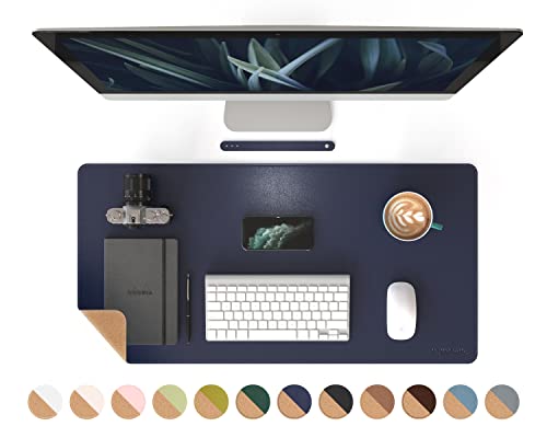 RENMTURE Dual-Sided Mouse Pad, Natural Cork & PU Leather Large Desk Pad for Office and Home Work, Desk Protector Non-Slip, Waterproof, Easy Clean (Dark Blue, 32"x16")