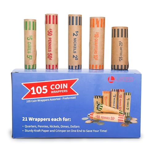 L LIKED Preformed Coin Roll Wrappers (105 Assorted) - 21 Quarters, 21 Pennies, 21 Nickels 21 Dimes and 21 Dollars (105 pcs)