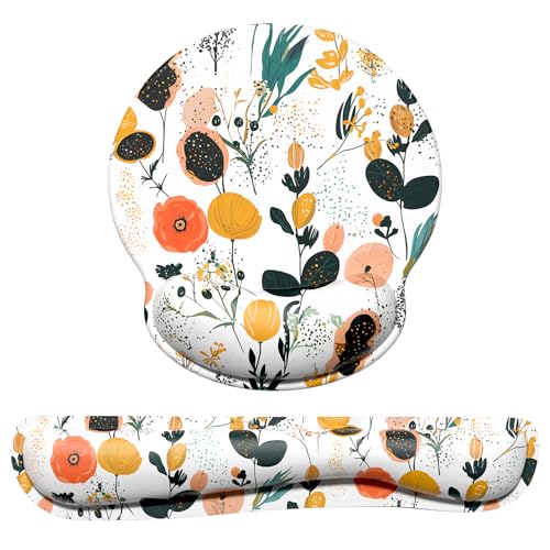 Dapesuom Keyboard Wrist Rest and Mouse Pad with Wrist Support, Memory Foam Cushion for Keyboard and Mouse Set, Ergonomic Desktop Pad Rests with Non Slip Base for Easy Typing & Pain Relief, Cute Herbs